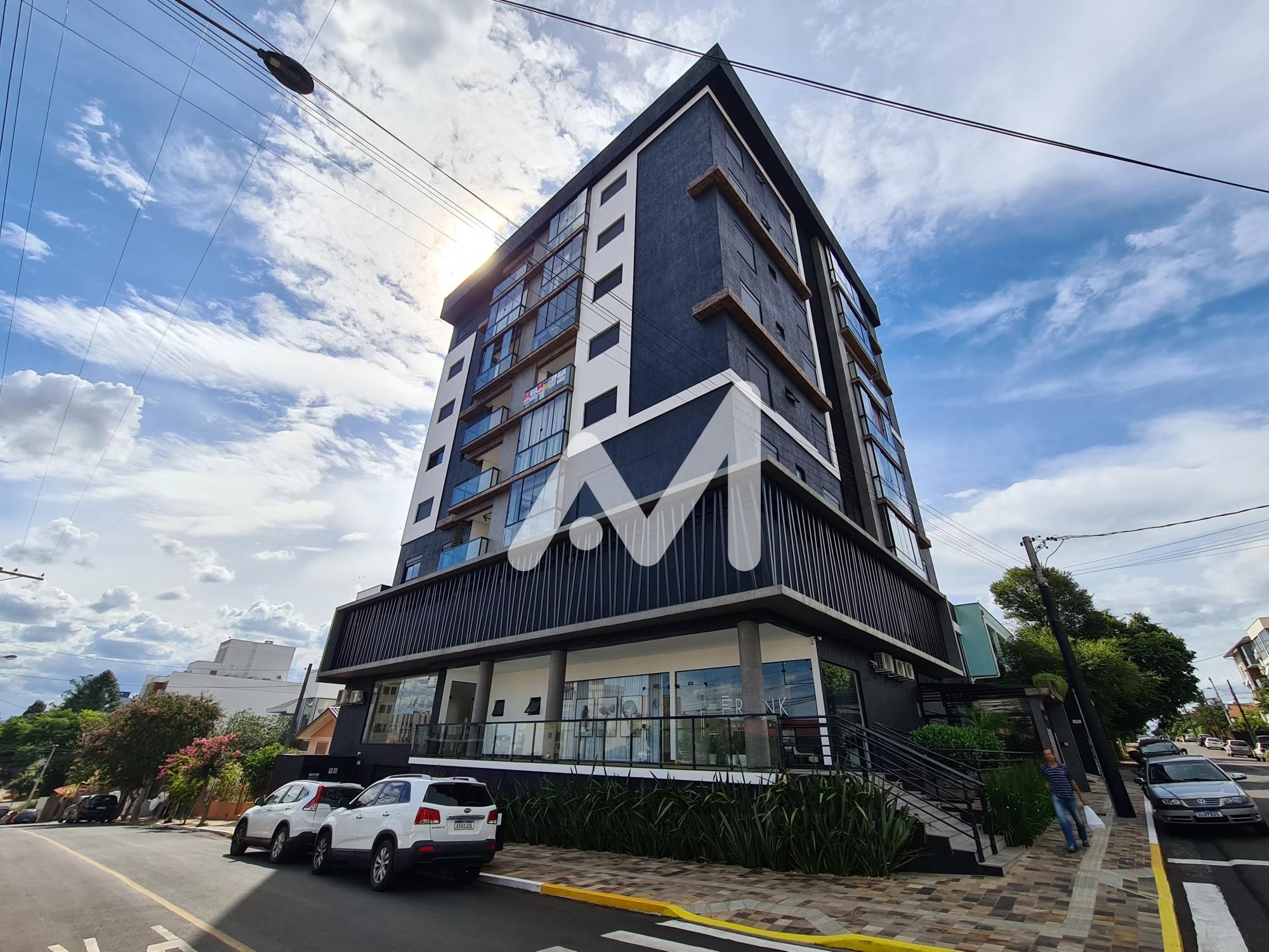 Prédio com elevador, hall de entrada decorado, academia e salão de festas.