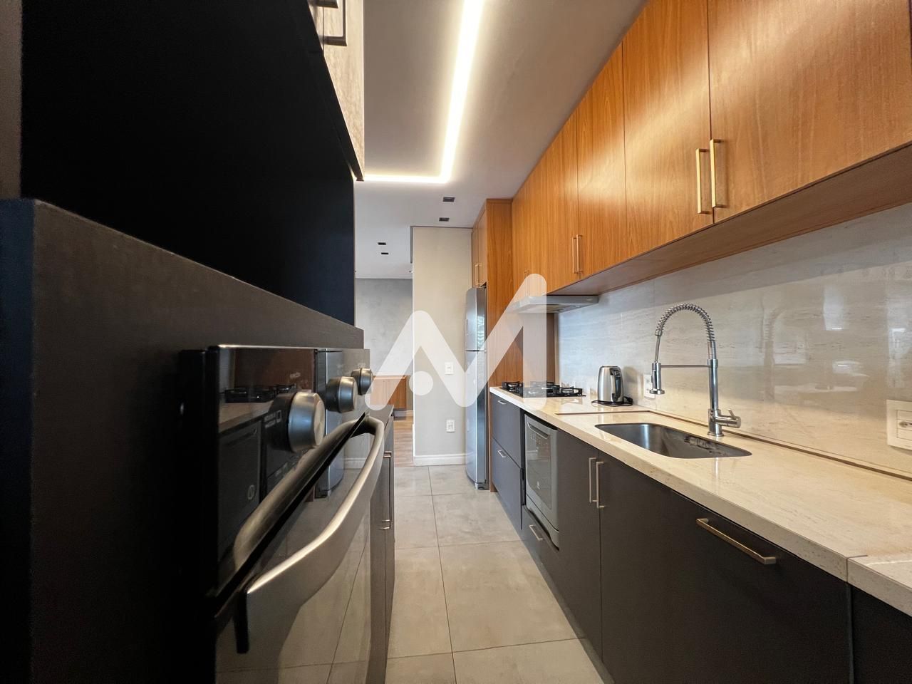 Sala ampla de estar e jantar / split, cozinha sob medida e eletrodomésticos, lavanderia, 03 dormitórios / 01 suíte, ambos com split, , lavabo e banheiro social, varanda integrada com churrasqueira, vista de frente com sol da manhã e Box de estacionamento. Sai geladeira ,rack e sofá.