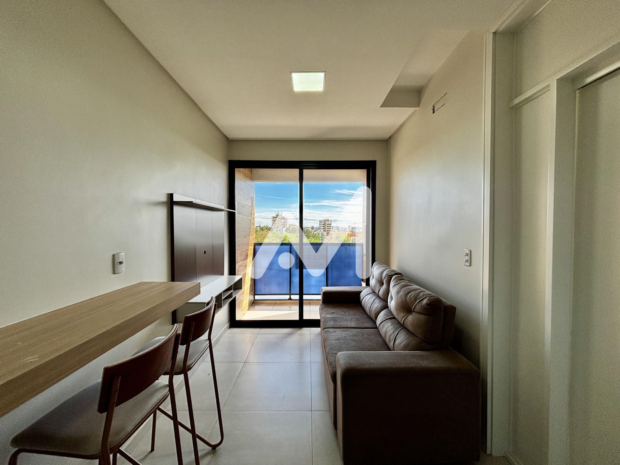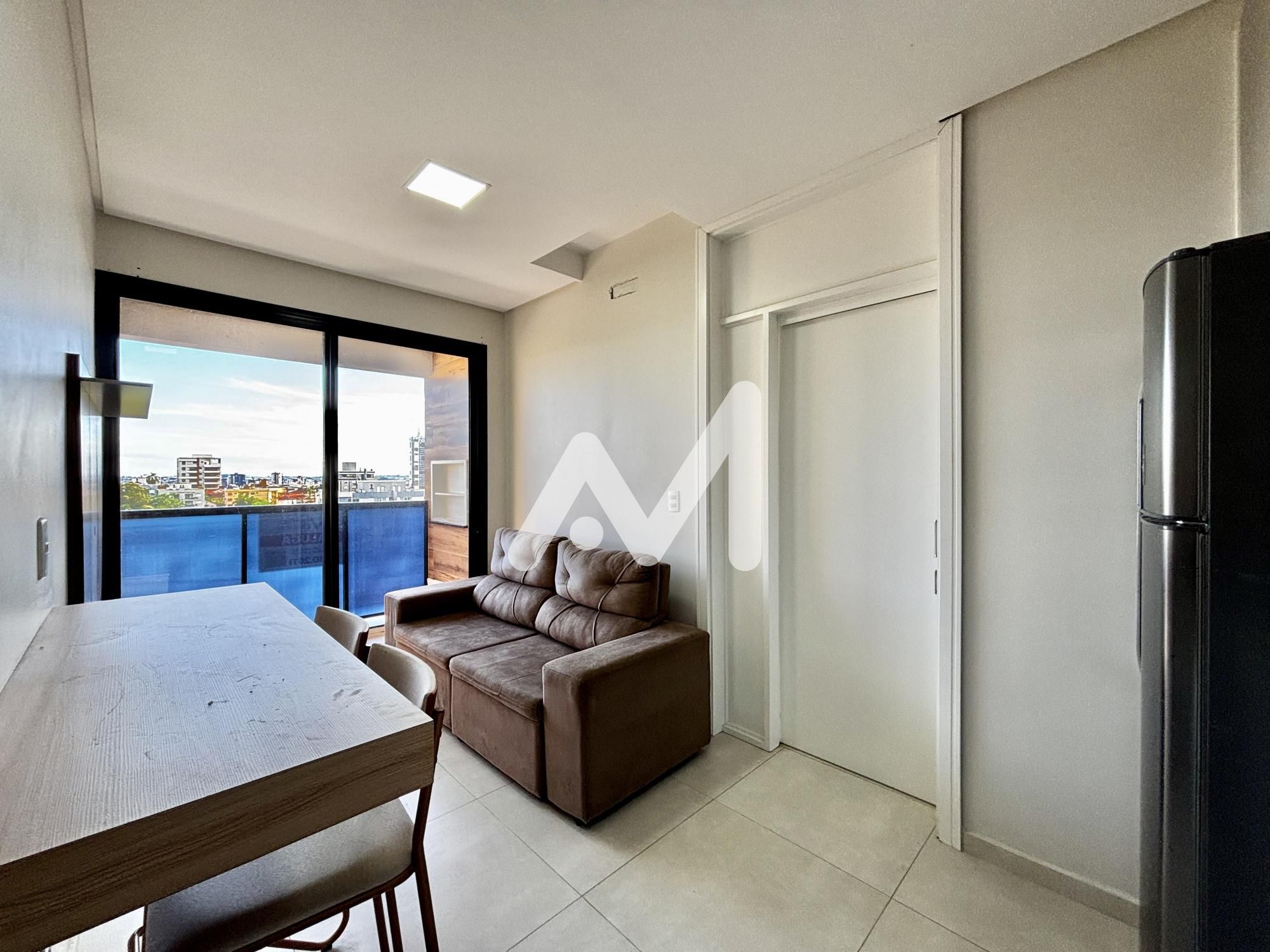 Apartamento semimobiliado com móveis planejados no bairro Universitário! Possui 01 dormitório, ambiente integrado com sala, cozinha e área de serviço, banheiro social, churrasqueira, box de estacionamento e uma vista linda da sacada!