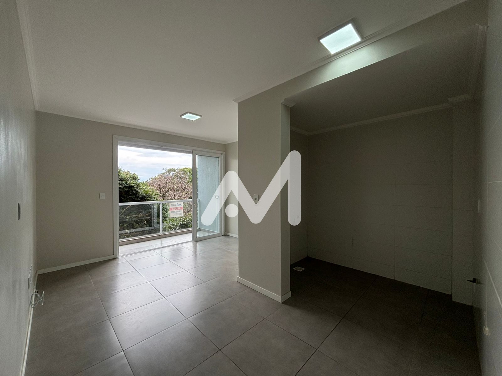 Apartamento com sacada e churrasqueira no Centro! Possui 01 dormitório, banheiro, sala, cozinha e área de serviço integrada com box de estacionamento. Prédio com elevador!