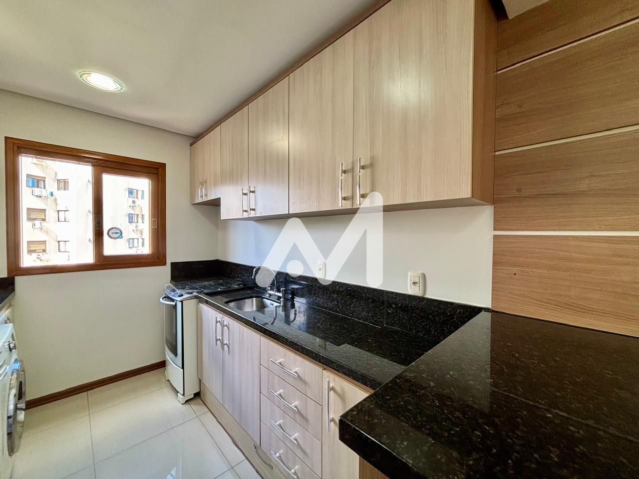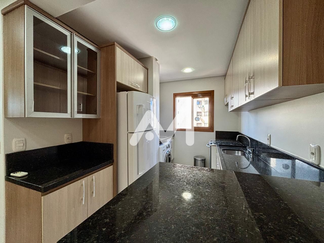 Possui 01 dormitório, sala com sacada fechada, cozinha, banheiro social, área de serviço, churrasqueira e Box de estacionamento.