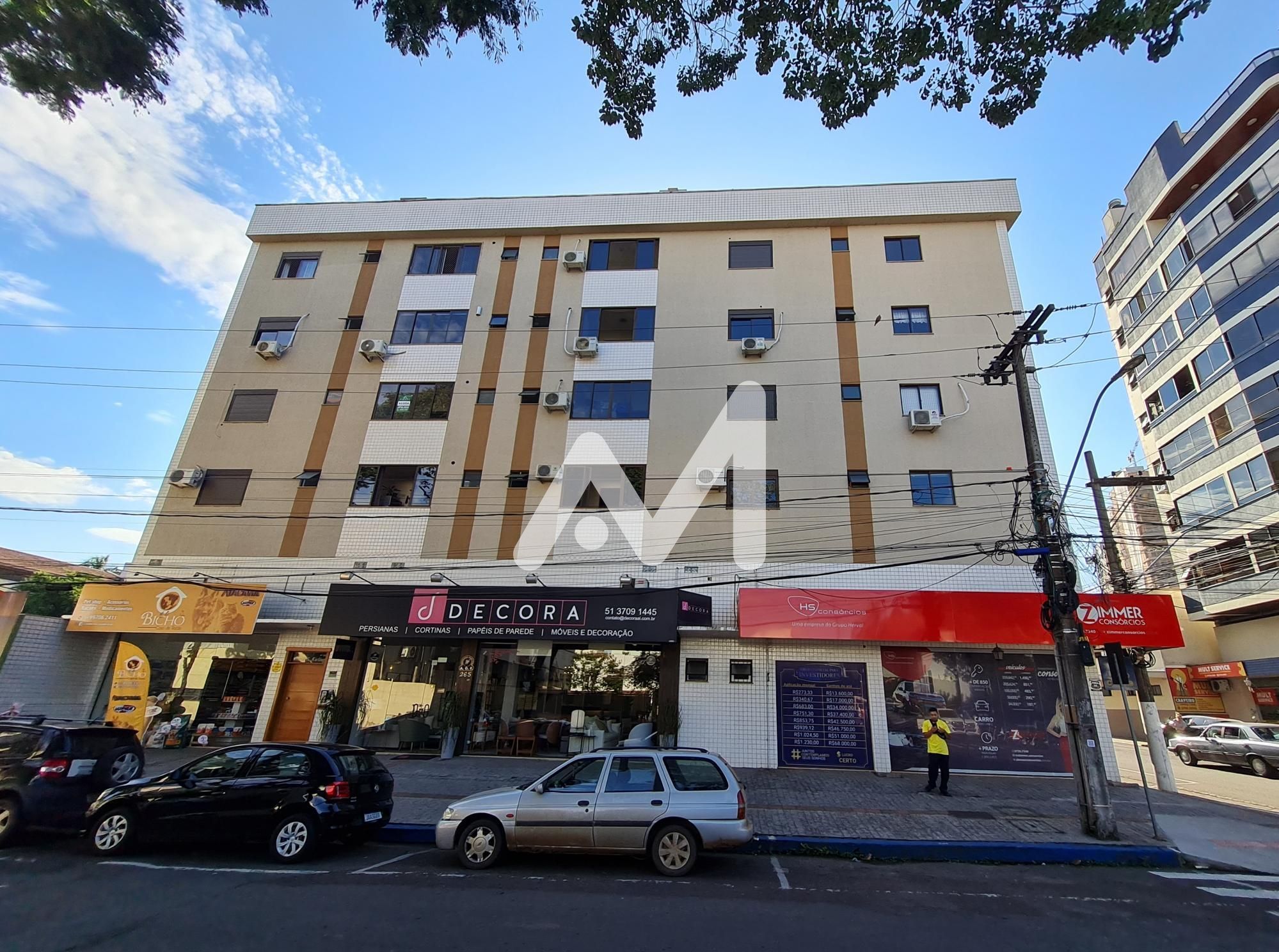 Prédio com elevador no centro da cidade! Apartamento de 02 dormitórios com sala, cozinha, banheiro, área de serviço, sacada de frente com churrasqueira e 01 box de estacionamento.