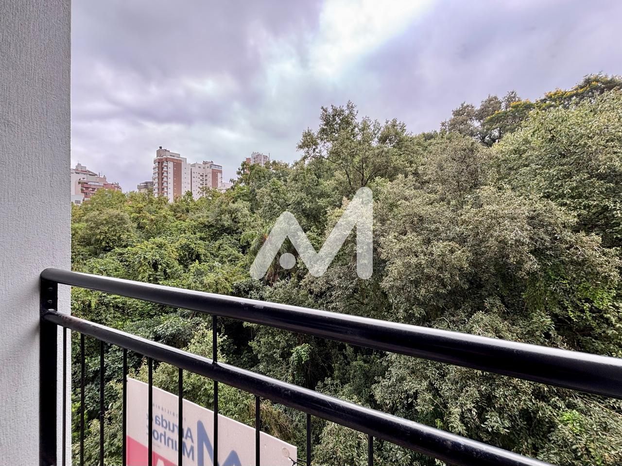 Apartamento no centro! Com 01 dormitório, sala e cozinha integradas, 01 banheiro, área de serviço, sacada de fundos com área verde e box de estacionamento. Prédio com elevador.