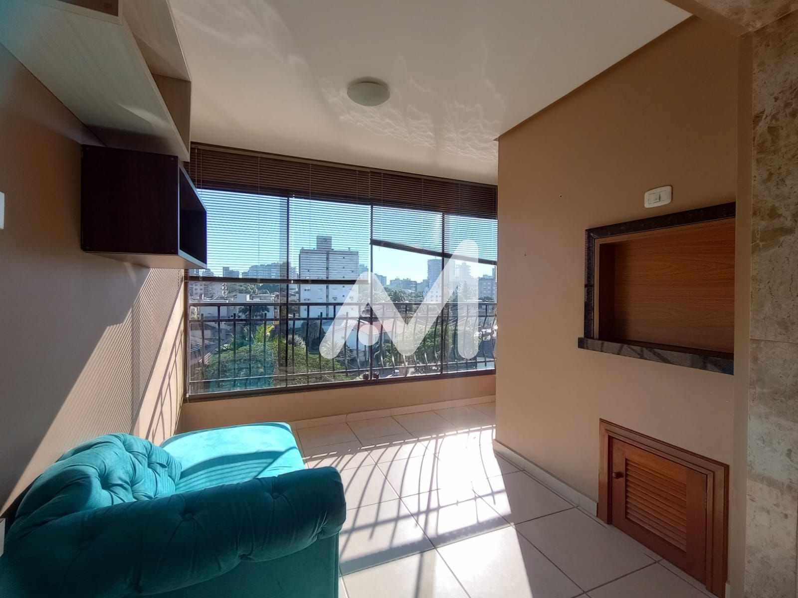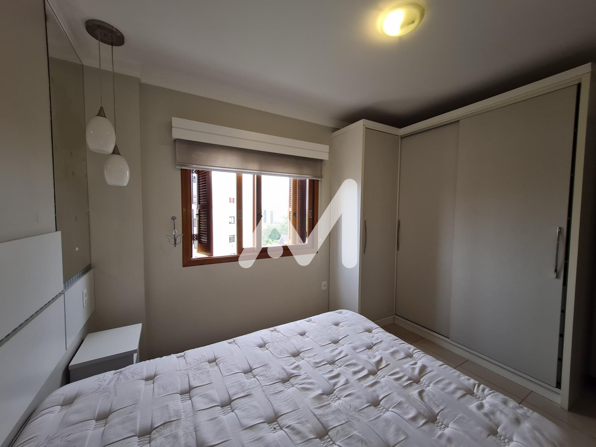Possui 01 dormitório, sala com sacada fechada, cozinha, banheiro social, área de serviço, churrasqueira e Box de estacionamento.