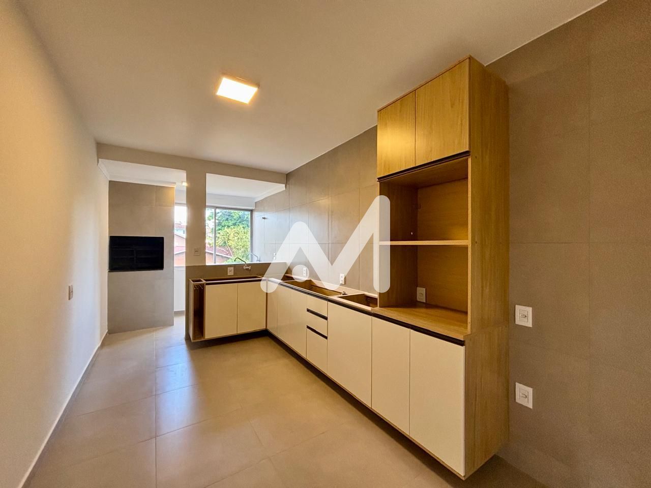 Apartamento amplo, 02 dormitórios, sala de estar e jantar, cozinha sob medida, banheiro, área de serviço, churrasqueira e Box de estacionamento.