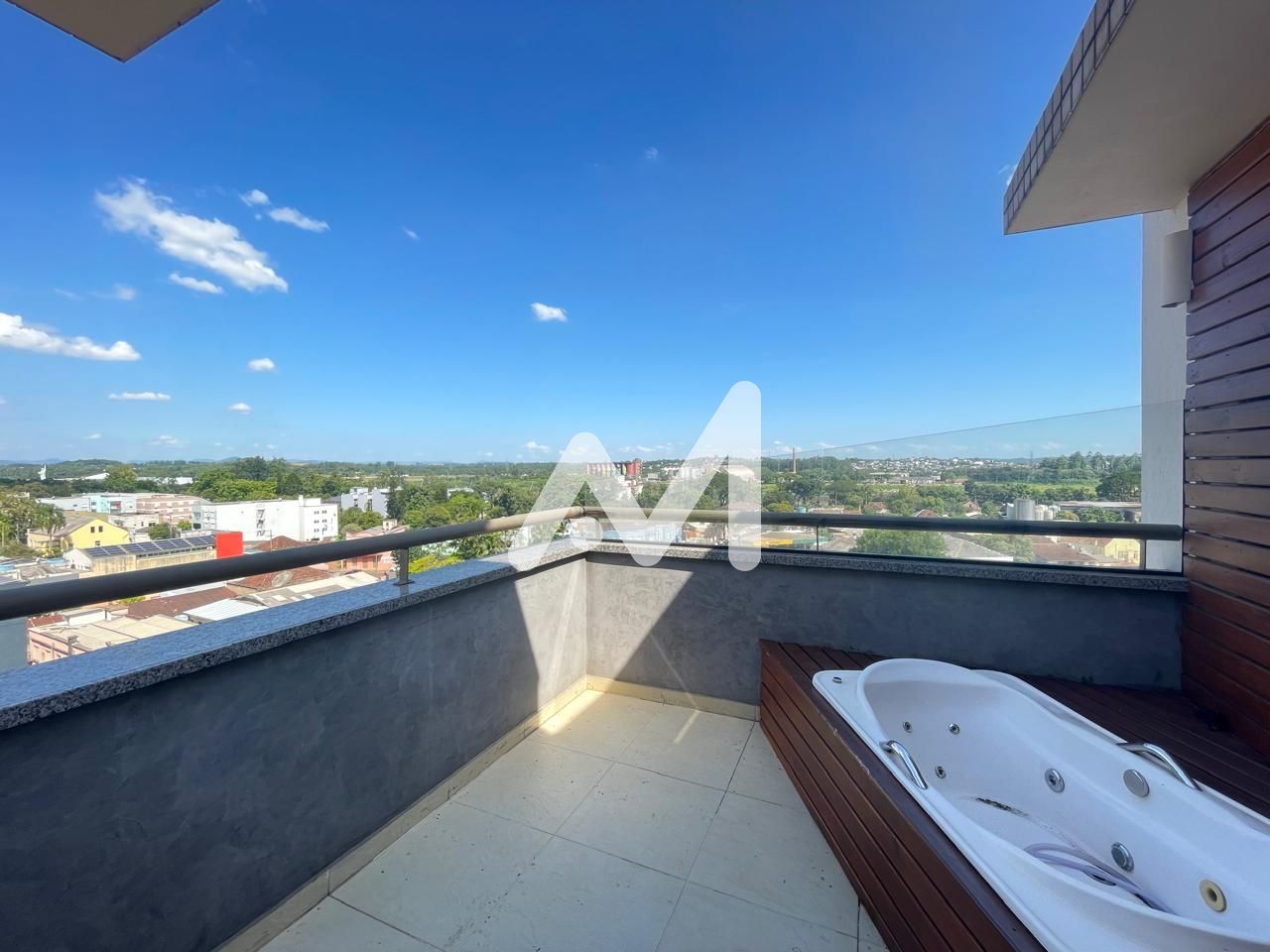 Cobertura semimobiliada, 02 dormitórios / sendo 01 suíte, sala, cozinha sob medida, 02 banheiros, área de serviço, churrasqueira, split nos dormitórios, sacada com terraço e banheira com hidro e Box de estacionamento. Prédio com elevador no centro.