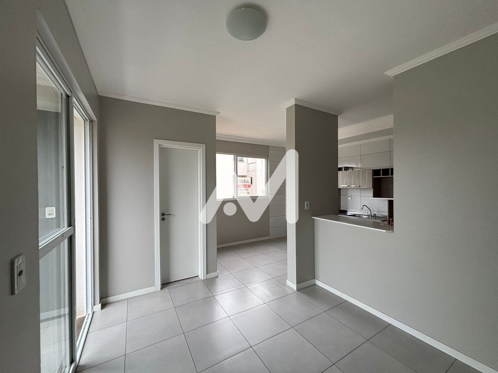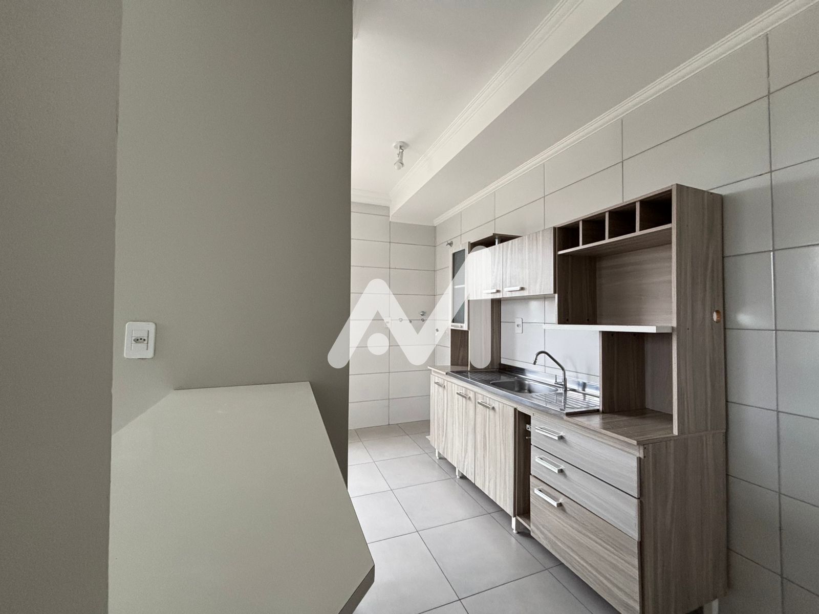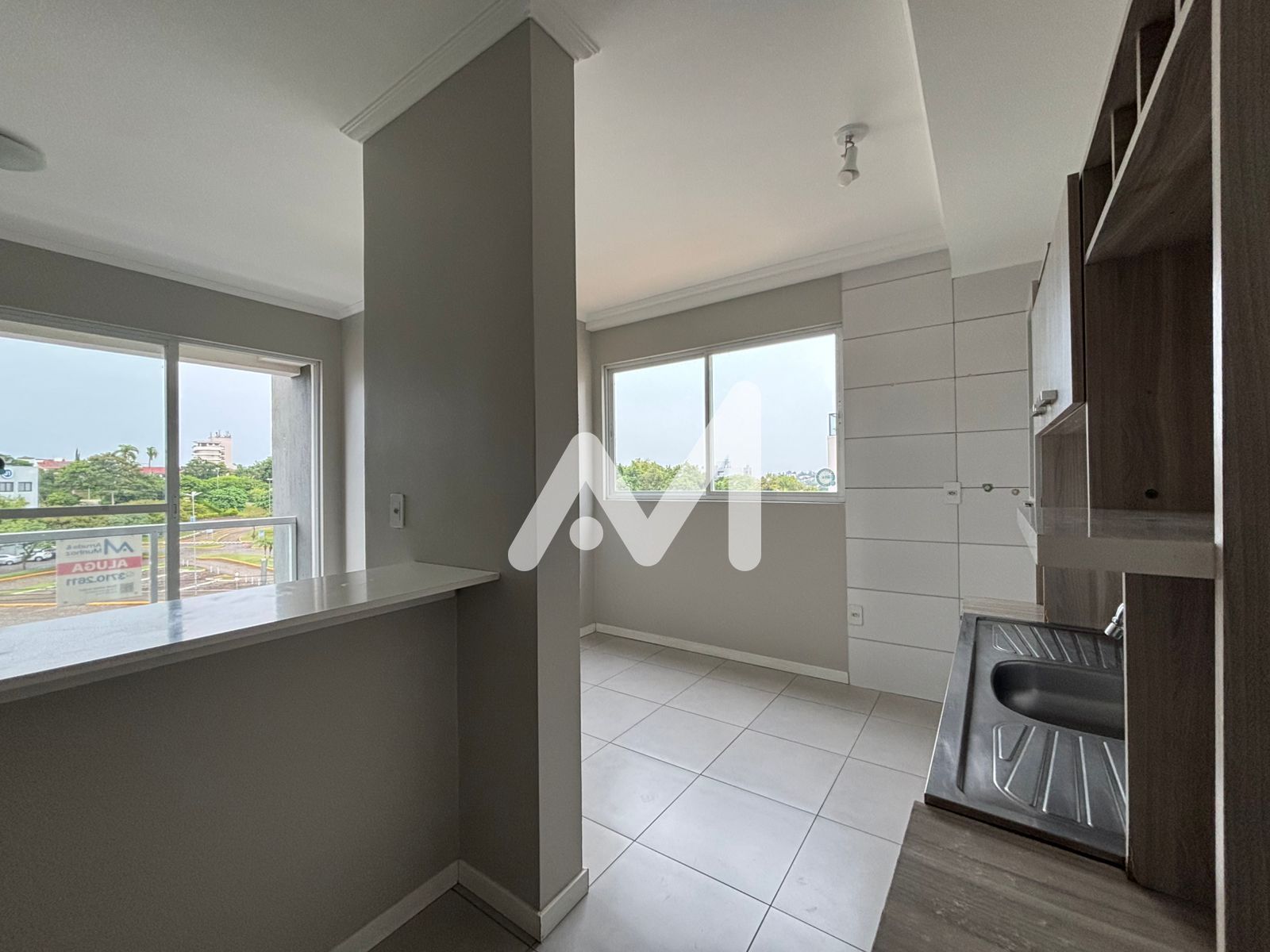 Apartamento JK, com armário de cozinha, banheiro, sacada de frente com churrasqueira e Box de estacionamento.