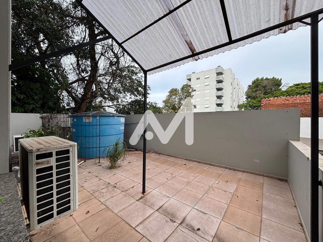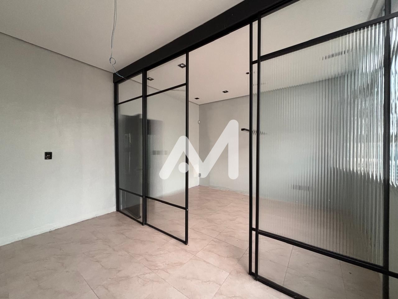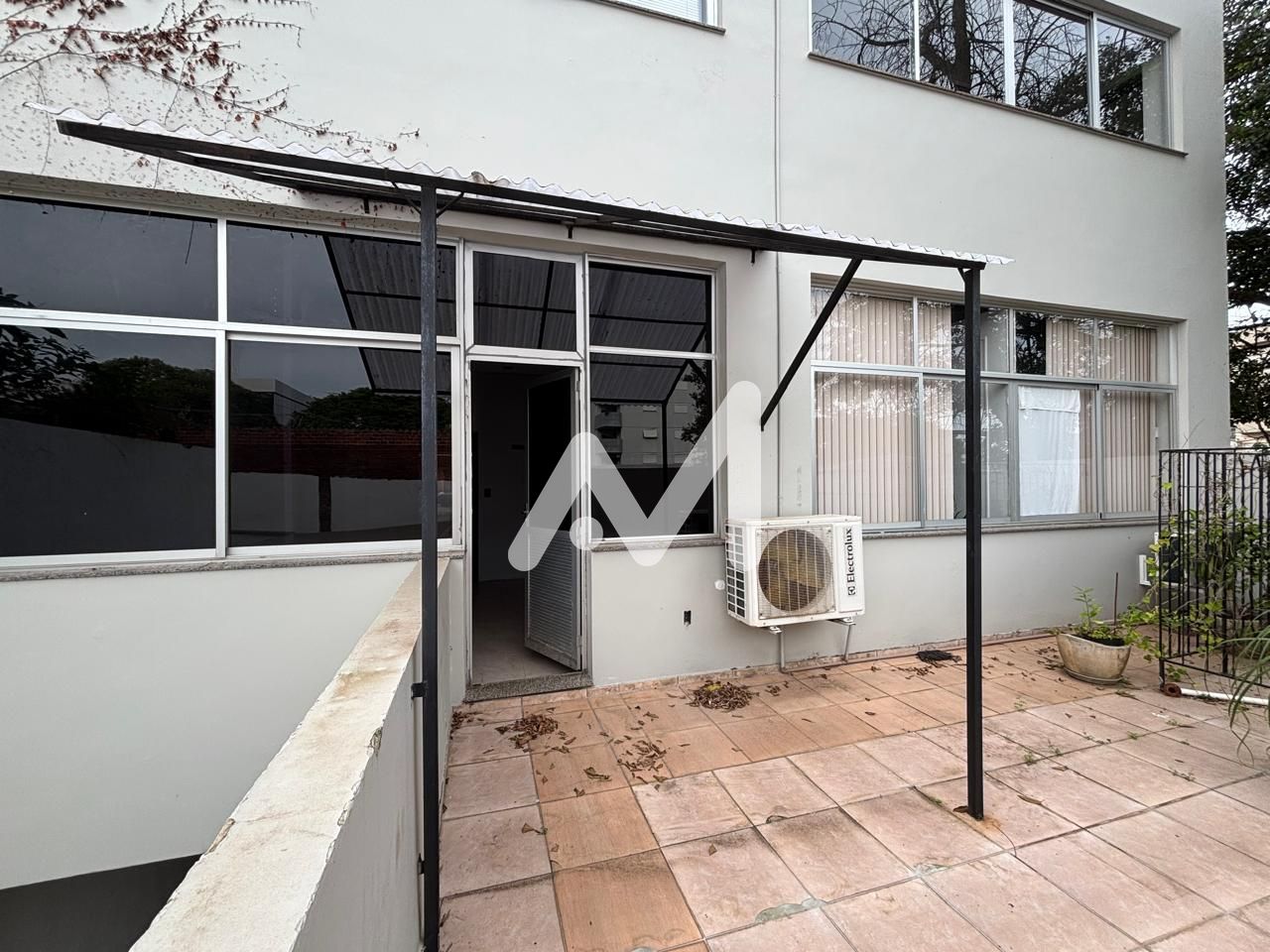Loja térrea, banheiro, vitrine, entrada lateral com terraço nos fundos.