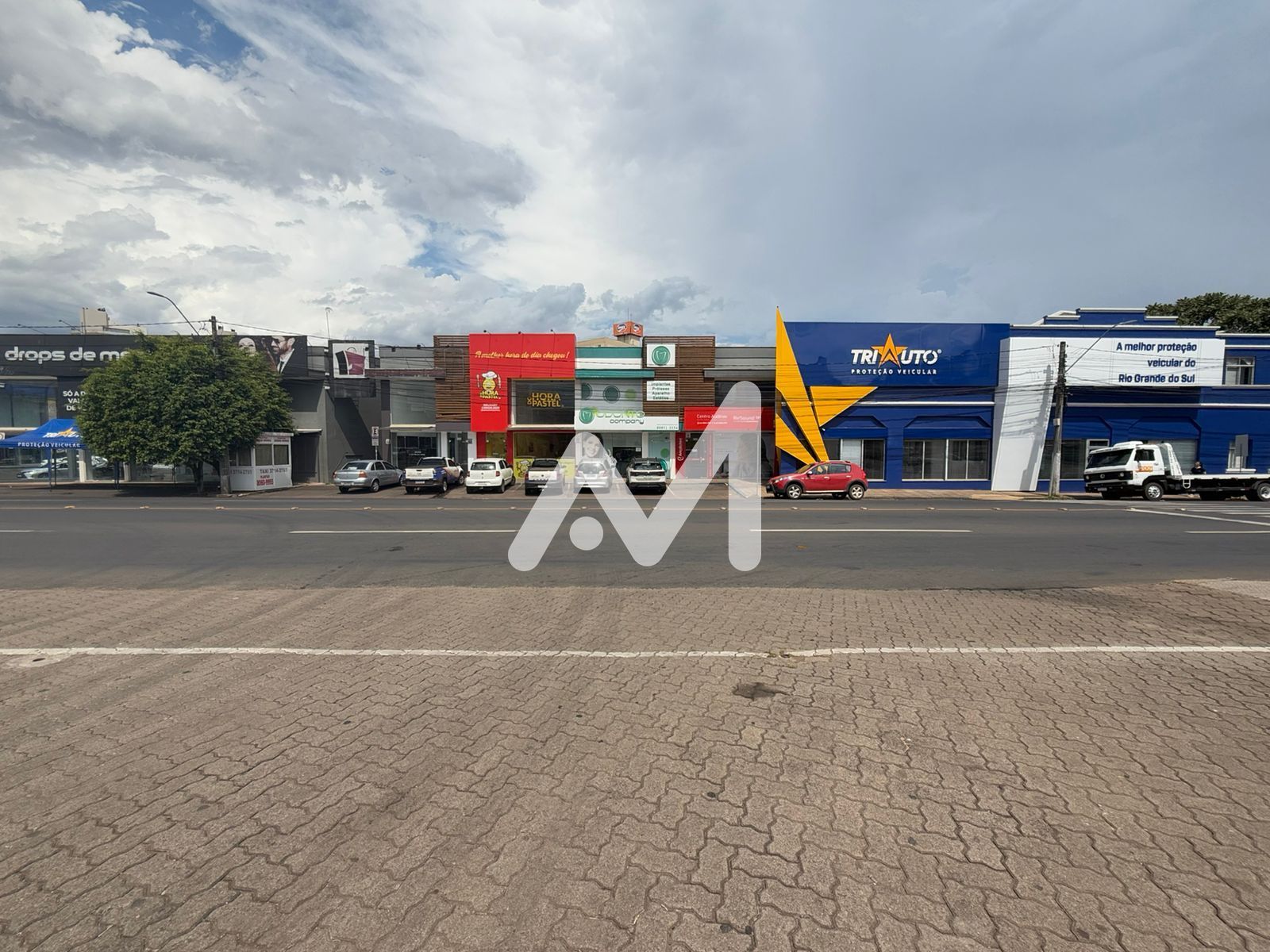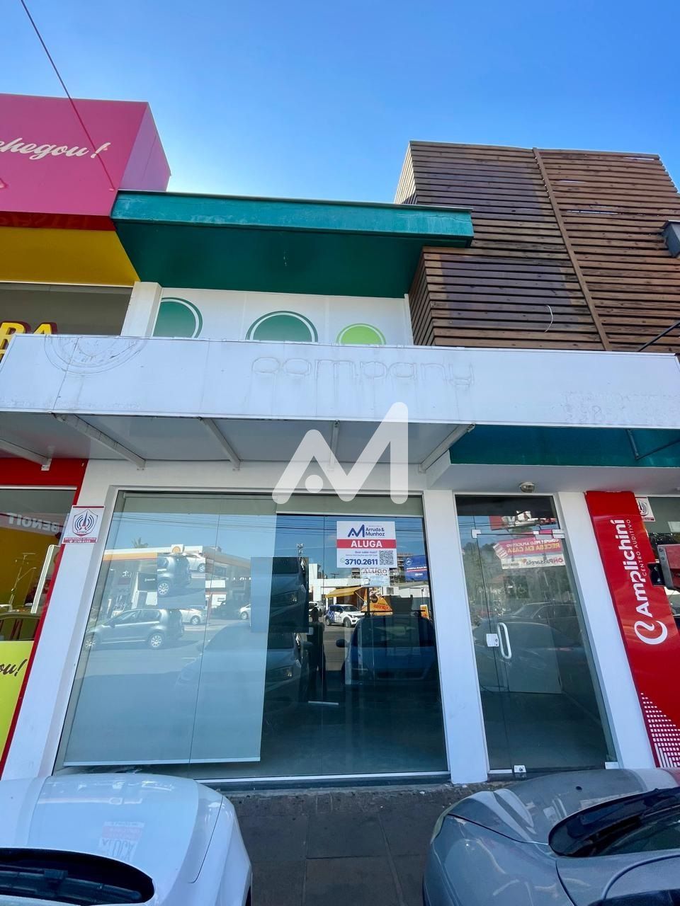 Loja térrea com 120m², vitrine, piso cerâmico, banheiro, mezanino e Box de estacionamento.