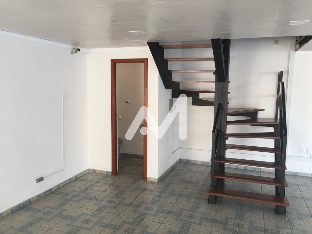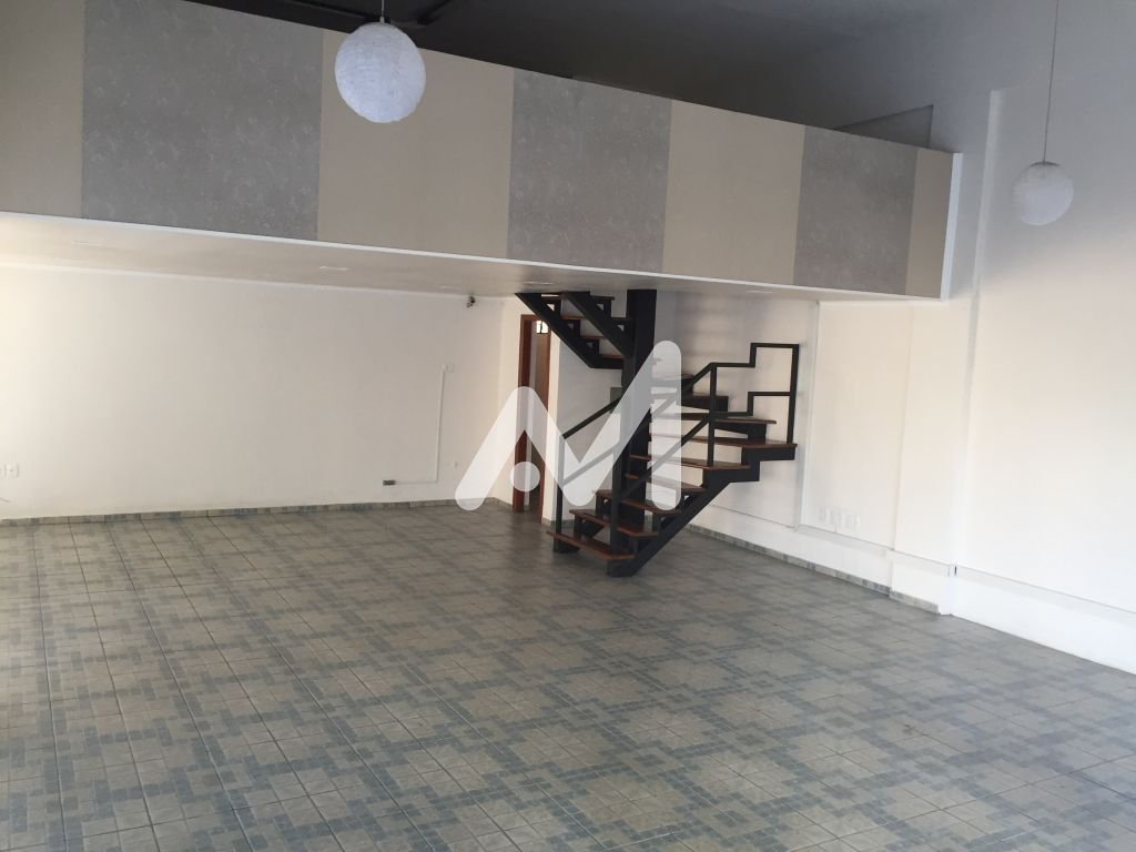 De esquina com vitrine de frente, mezanino, banheiro social.