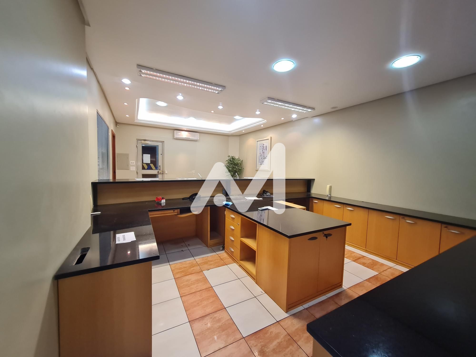 Sala comercial com mobília, recepção, 03 salas individuais, 04 ilhas de atendimento setorizadas, 02 banheiros e cozinha.