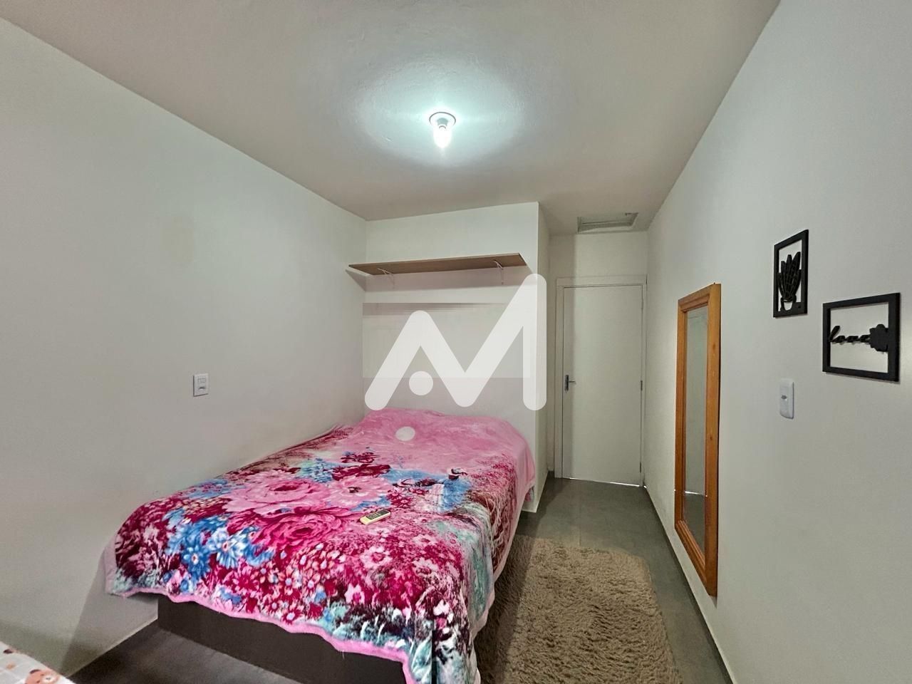 Casa geminada com sala, 02 dormitórios, banheiro, cozinha e área de serviço integradas, área coberta nos fundos, churrasqueira e garagem na frente.