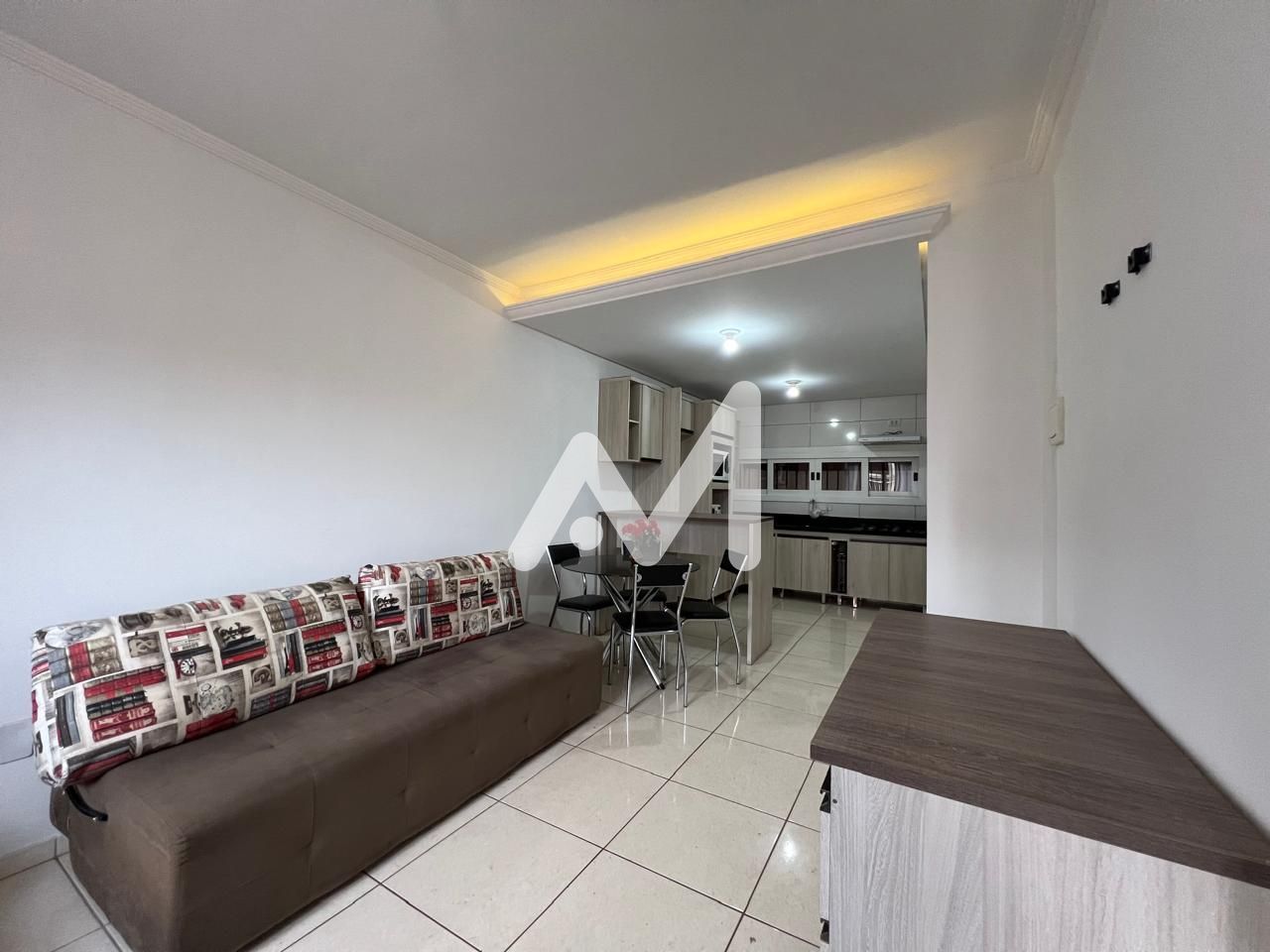 Sobrado mobiliado no bairro Campestre! Possui 02 dormitórios, sala de estar e jantar, cozinha, banheiro social e lavabo, área de serviço, churrasqueira, pátio e garagem na frente.