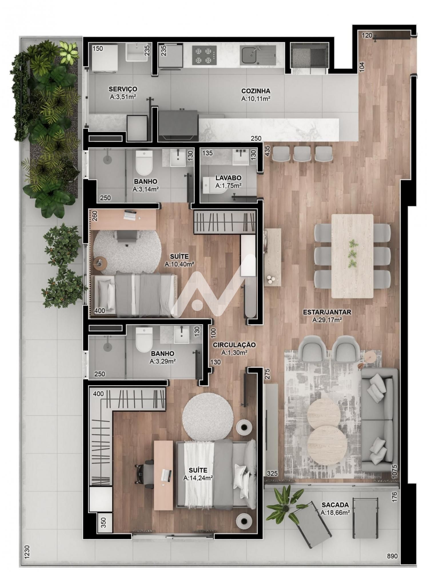Características do Imóvel: Churrasqueira, Cozinha, Espera para split, Gás individual, Hidrômetro individual, Interfone, Lavabo, Sacada, Sala de estar, Sala de jantar, Área de serviço