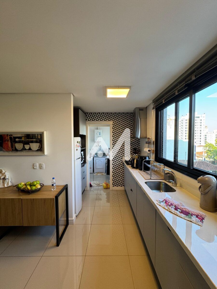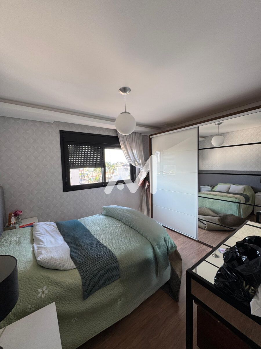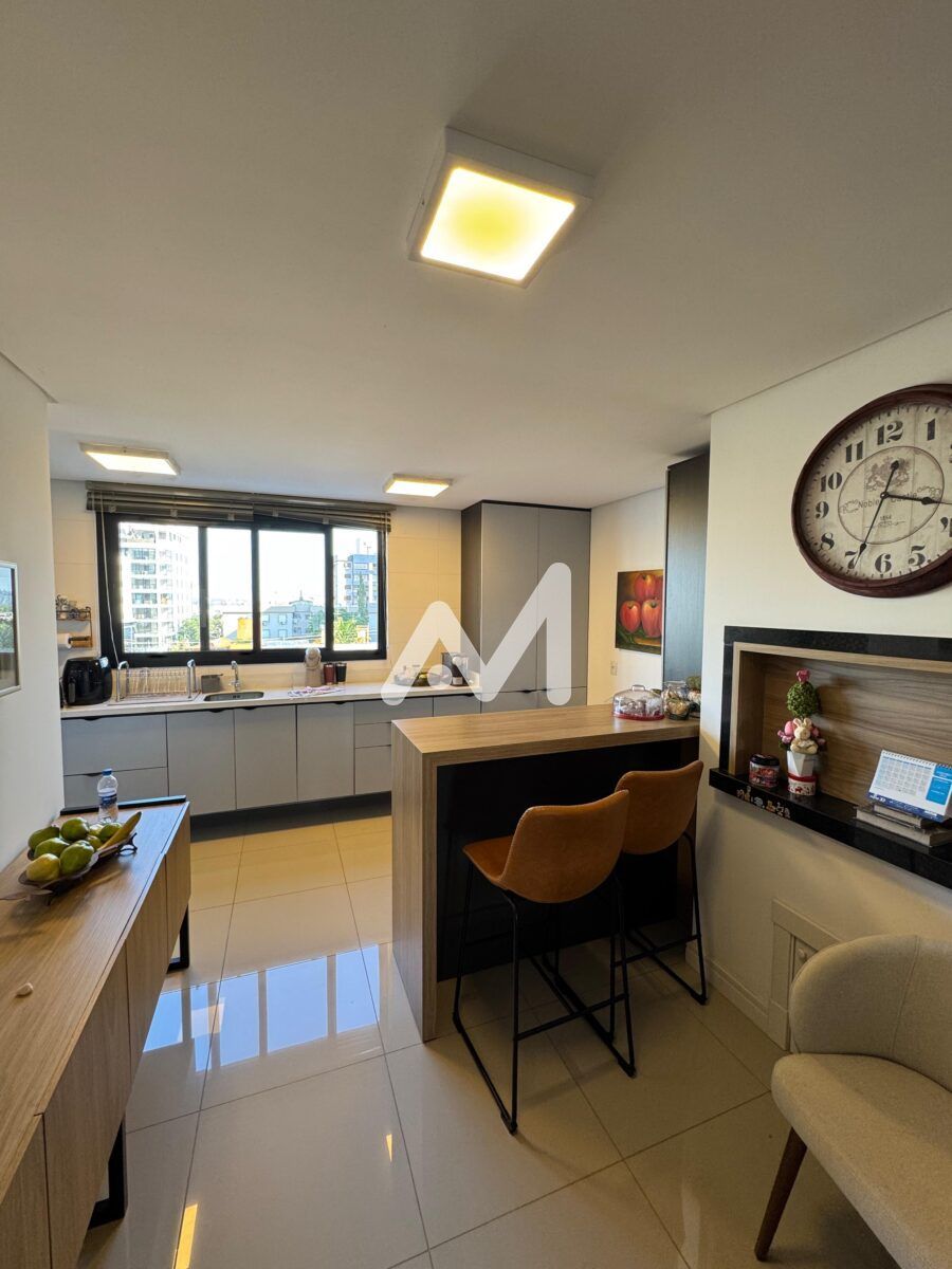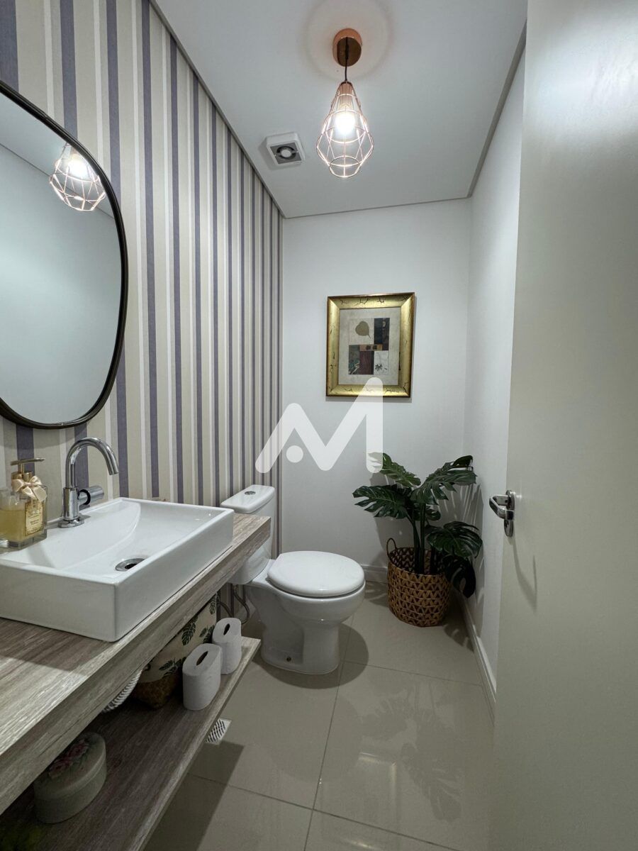 Apartamento semimobiliado com móveis planejados, composto por 03 dormitórios, sendo 01 suíte, cozinha, sala de estar/jantar, lavanderia, lavabo, banheiro social, sacada, churrasqueira, salão de festas, lavanderia, box de estacionamento, água individual, espera para split, gás individual, aberturas em alumínio, dois elevadores, massa corrida, acabamento em gesso, água quente.