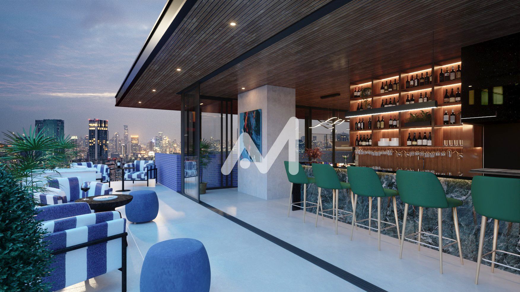 Academia, Automação predial, Deck molhado, Elevador, Espaço gourmet, Gás central, Hall de entrada, Hidrômetro individual, Interfone, Lavanderia coletiva, Piscina coberta, Portaria virtual, Rooftop, Sala de cinema, Salão de festas, Sauna, Spa, Vídeo monitoramento