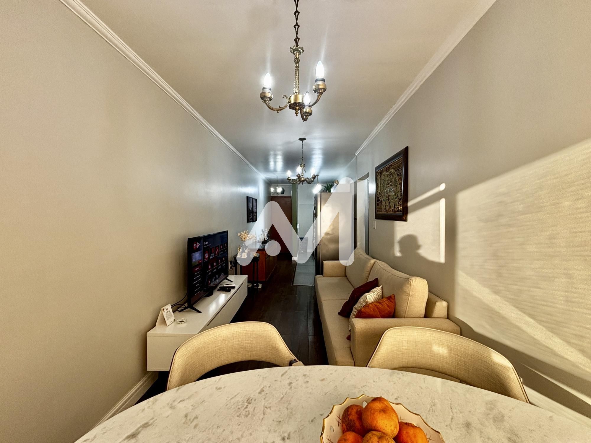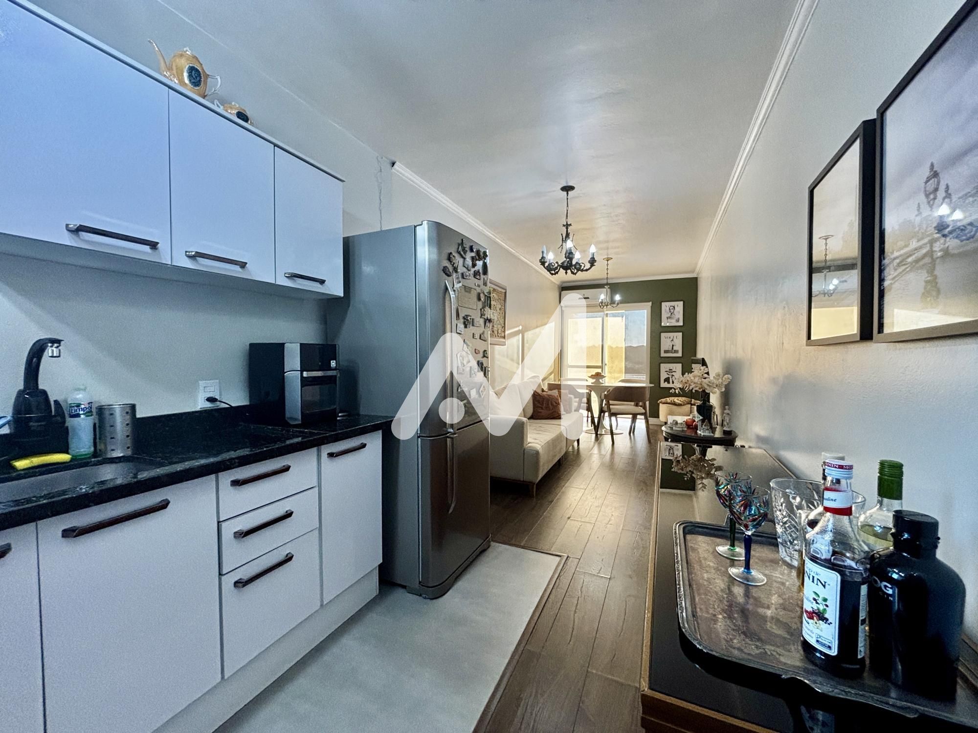Apartamento mobiliado e decorado composto por 01 dormitório, cozinha, sala de estar/jantar, banheiro social, área de serviço, sacada com churrasqueira e box para 01 carro.