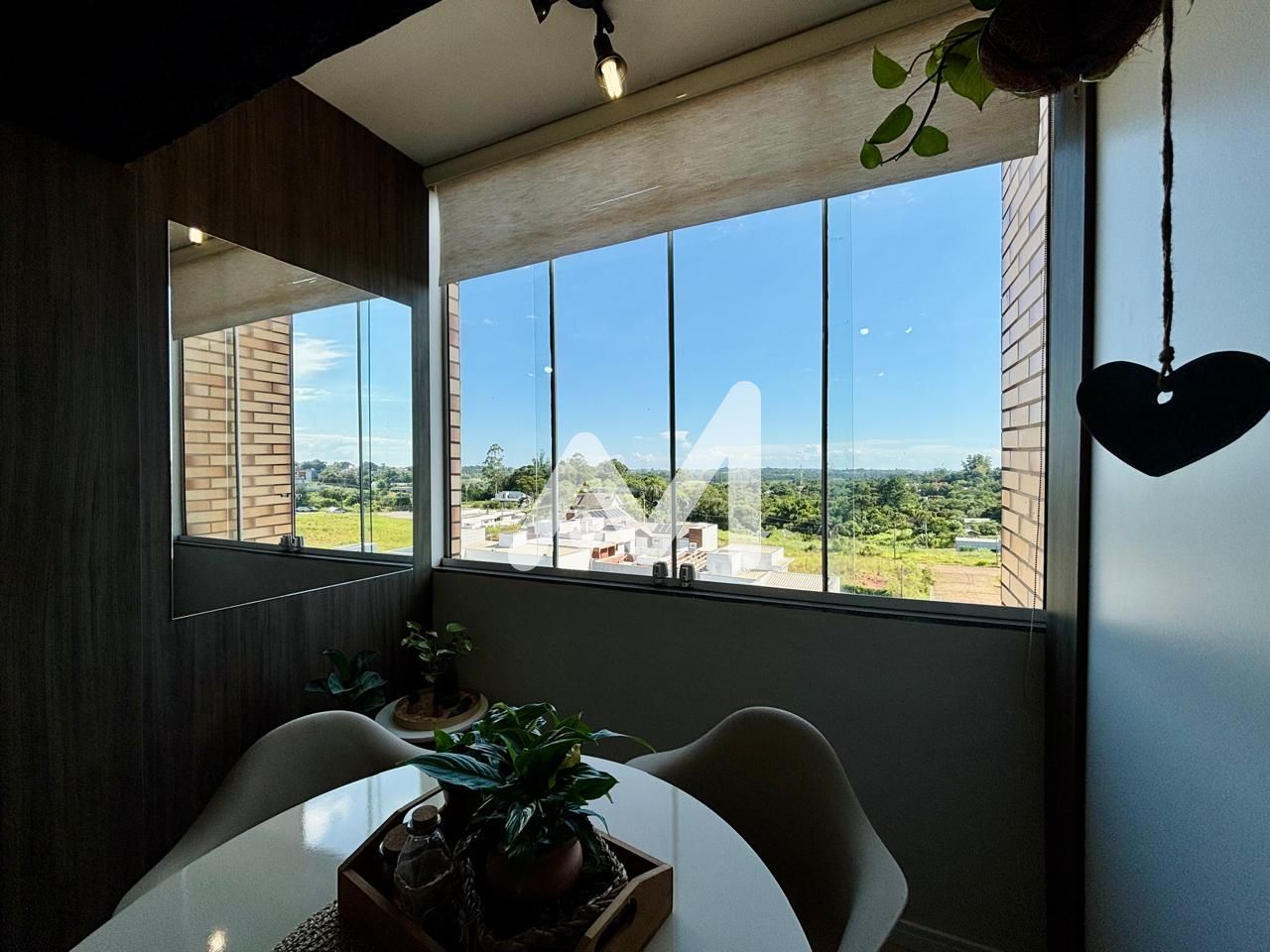 Características do Imóvel: Ar condicionado, Armário cozinha, Armário embutido, Banheiro social, Coleta seletiva de lixo, Cozinha, Espera para split, Gás individual, Hidrômetro individual, Interfone, Janela grande, Luminárias, Móveis planejados, Sala de estar, Sala de jantar, Varanda, Varanda fechada com vidro, Varanda integrada, Vista panorâmica, Área de serviço