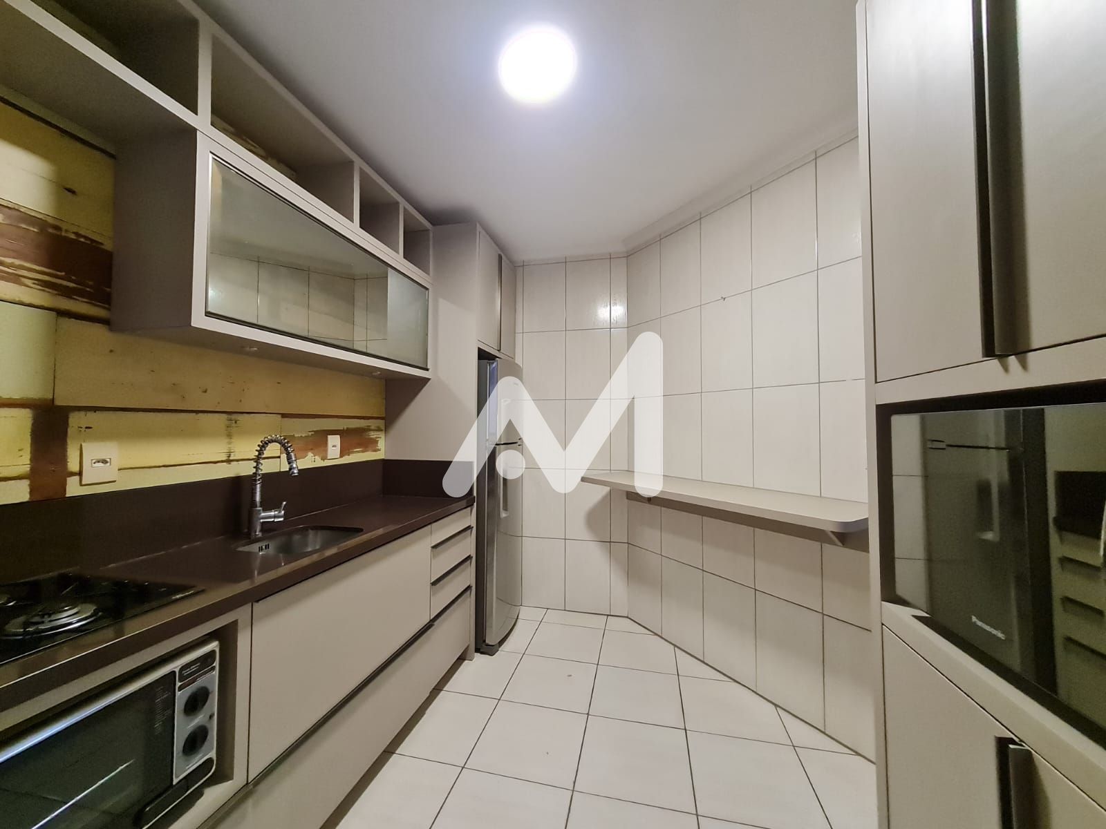 Características do Imóvel: Ar condicionado, Banheiro social, Churrasqueira, Cozinha, Geladeira, Interfone, Microondas, Sala de estar, Sala de jantar, Área de serviço