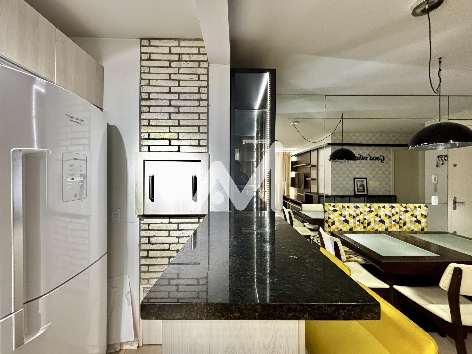 Características do Imóvel: Ar condicionado, Armário cozinha, Armário embutido, Banheiro social, Churrasqueira, Coleta seletiva de lixo, Cozinha, Cozinha americana, Elevador, Espera para split, Geladeira, Gás individual, Hidrômetro individual, Interfone, Luminárias, Microondas, Móveis planejados, Sala de estar, Sala de jantar, Varanda, Varanda integrada, Área de serviço
