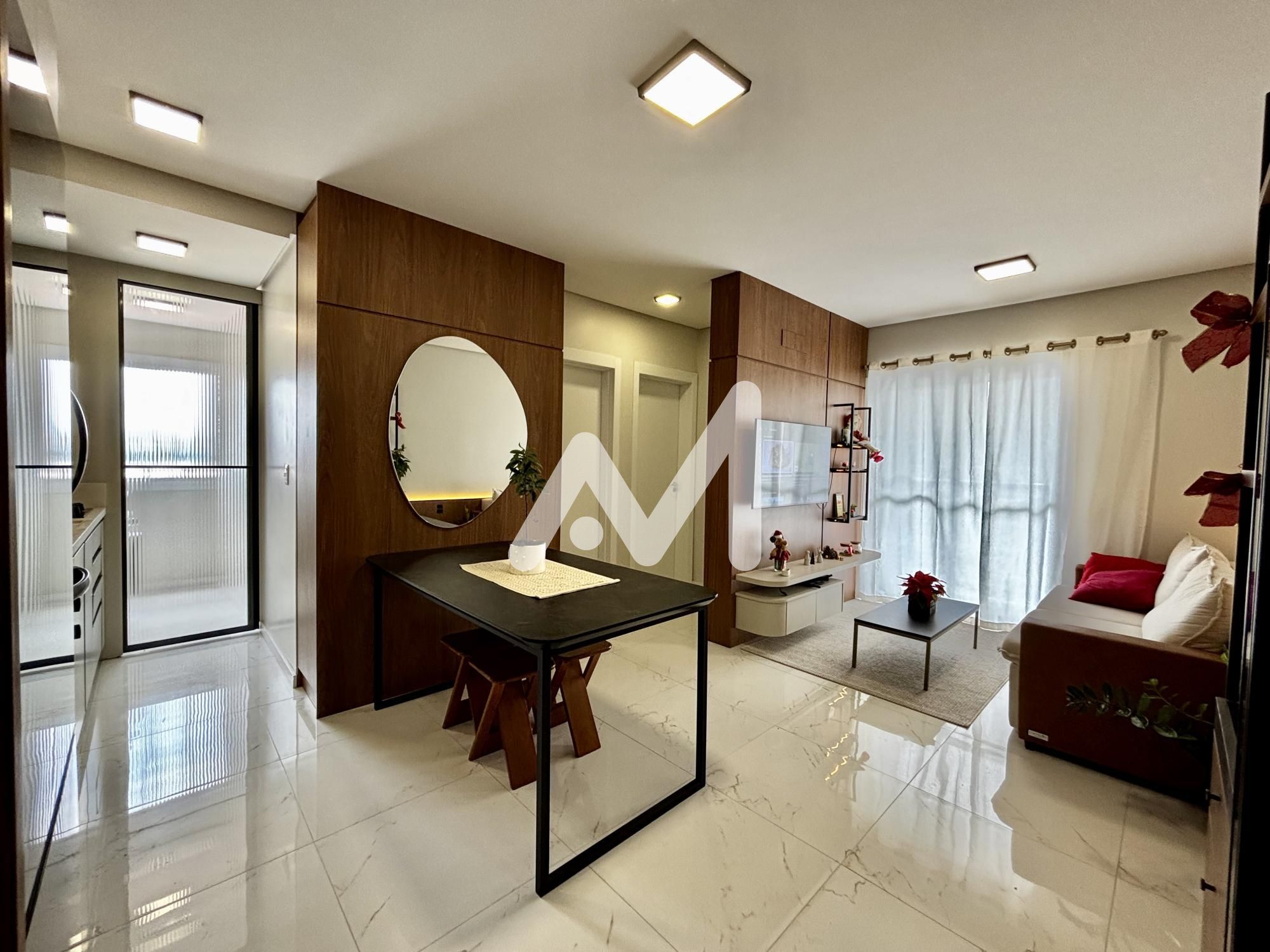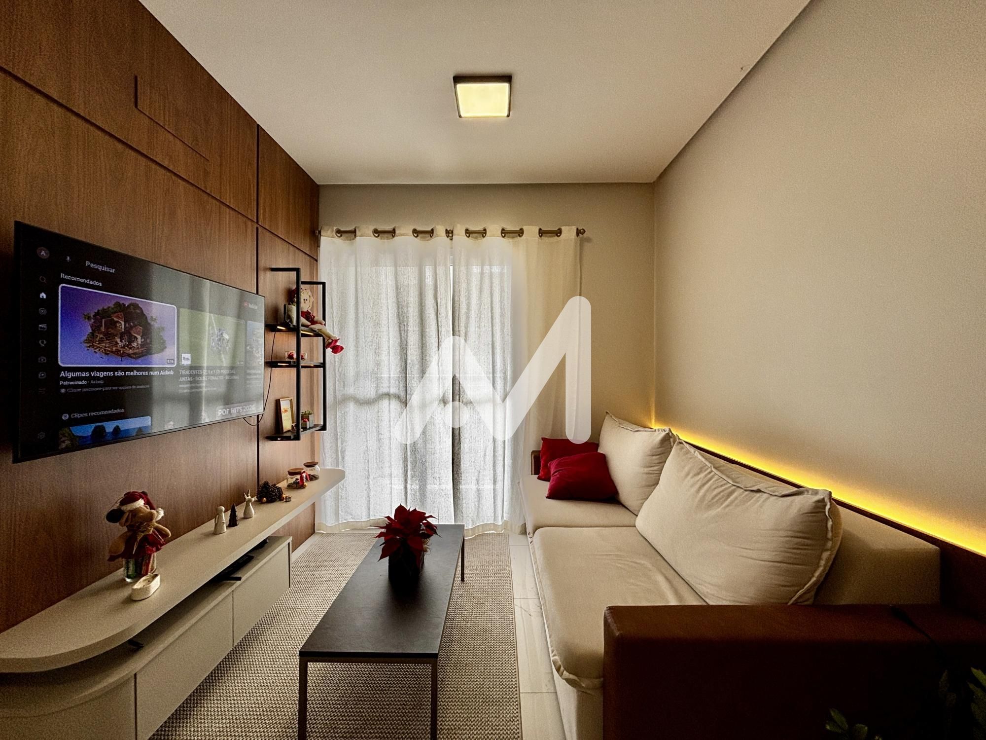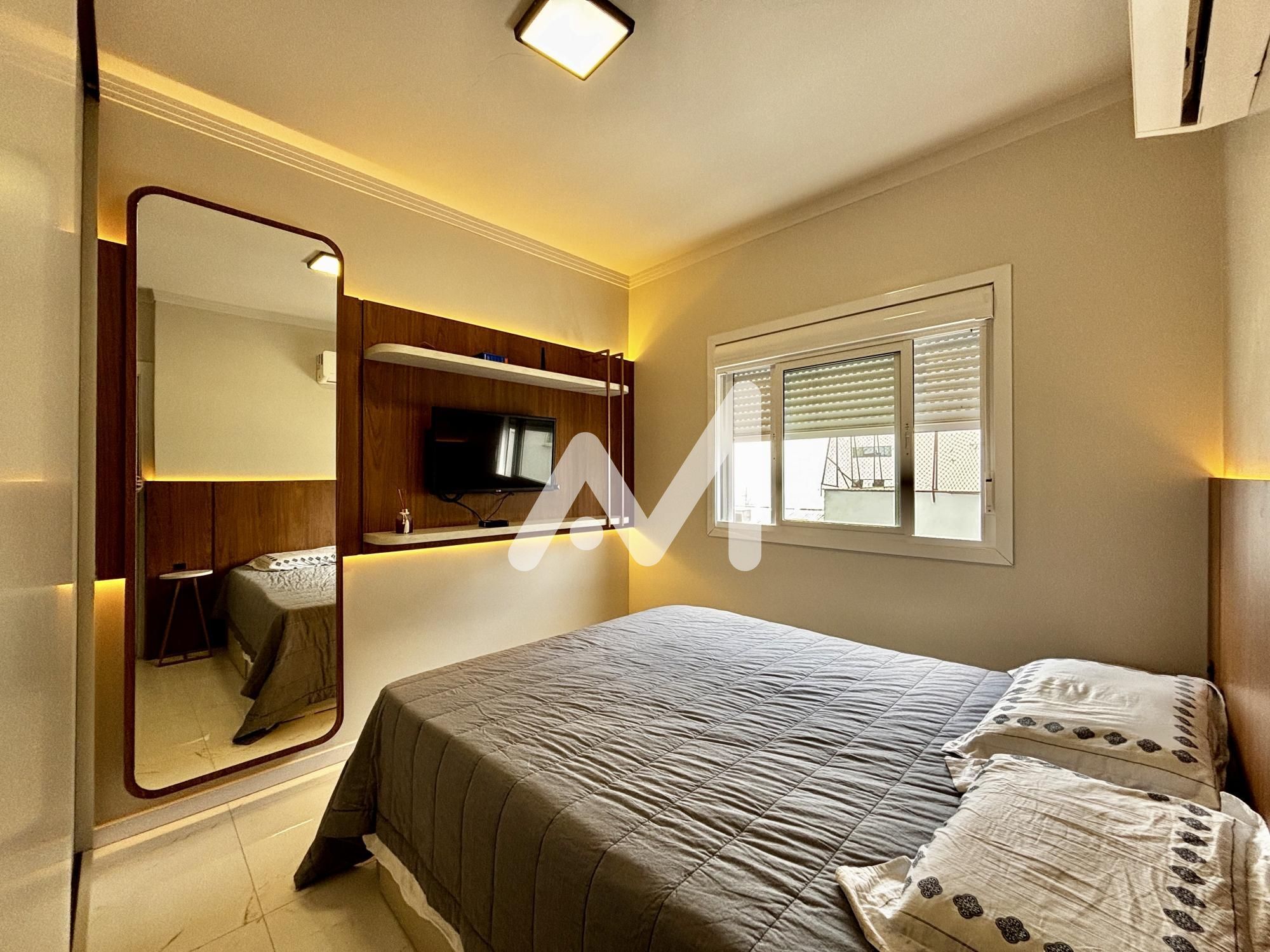Apartamento MOBILIADO composto por 02 dormitórios, estar social, cozinha, banheiro social, área de serviço, churrasqueira. Box de estacionamento.