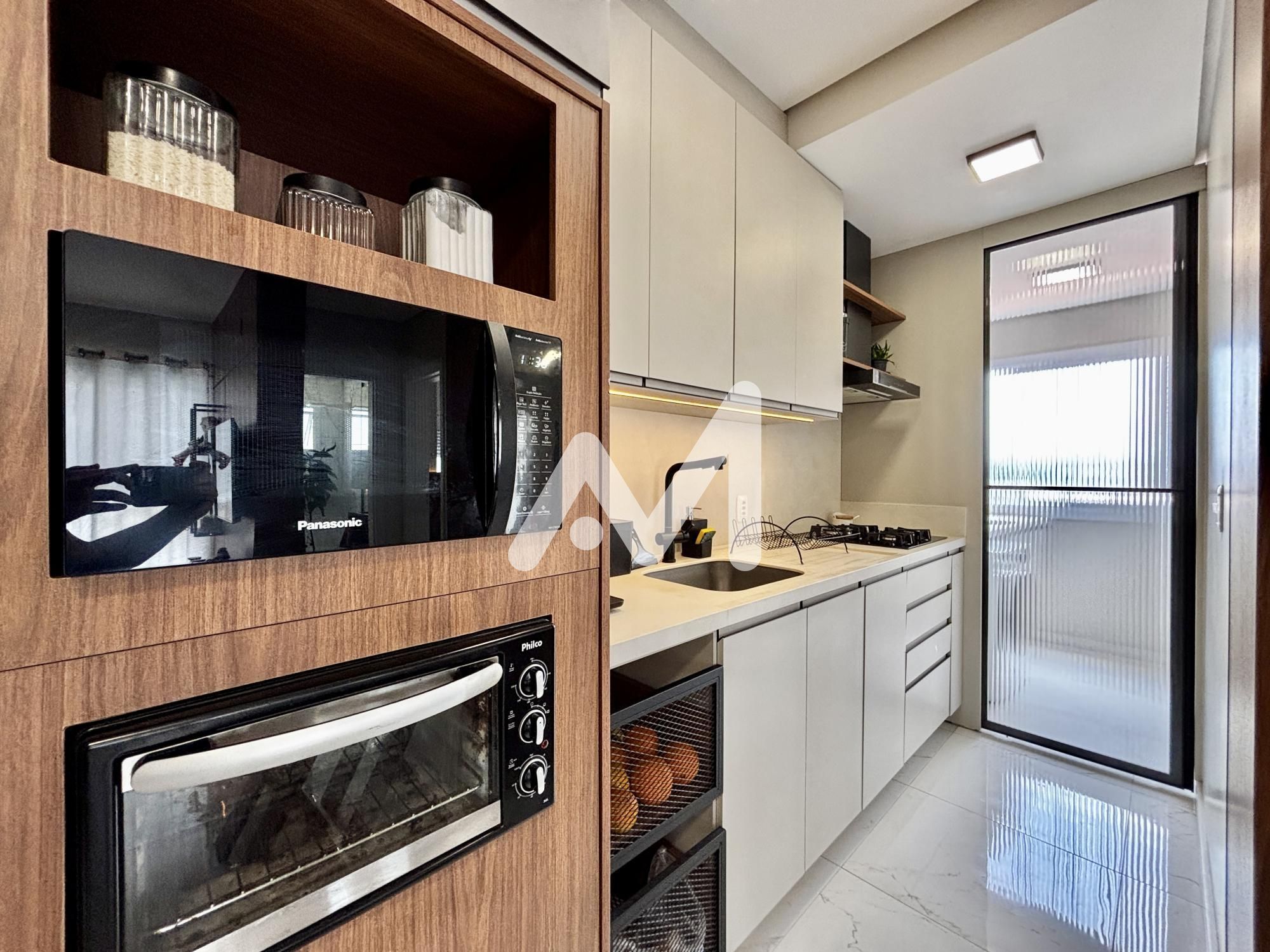 Características do Imóvel: Ar condicionado, Armário cozinha, Armário embutido, Banheiro social, Churrasqueira, Cozinha, Elevador, Interfone, Luminárias, Móveis planejados, Sacada, Sala de estar, Sala de jantar, Varanda, Área de serviço