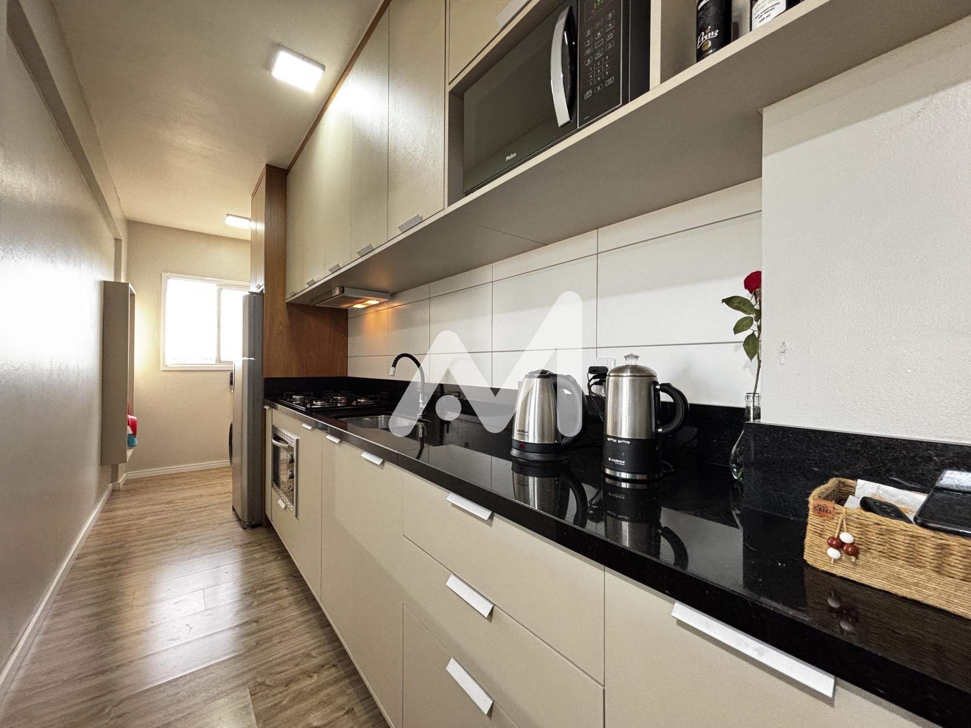 Belíssimo apartamento mobiliado com móveis planejados, composto por 02 dormitórios, cozinha, sala de estar/jantar, área de serviço, banheiro social, sacada fechada com vidro, churrasqueira, vista panorâmica, box para 01 carro.