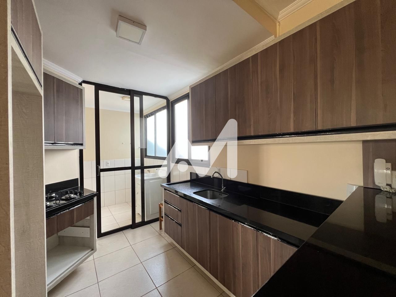 Apartamento com 02 dormitórios, cozinha sob medida, sacada fechada de frente, 02 dormitórios, sala, banheiro, área de serviço, churrasqueira, terraço e Box de estacionamento.
