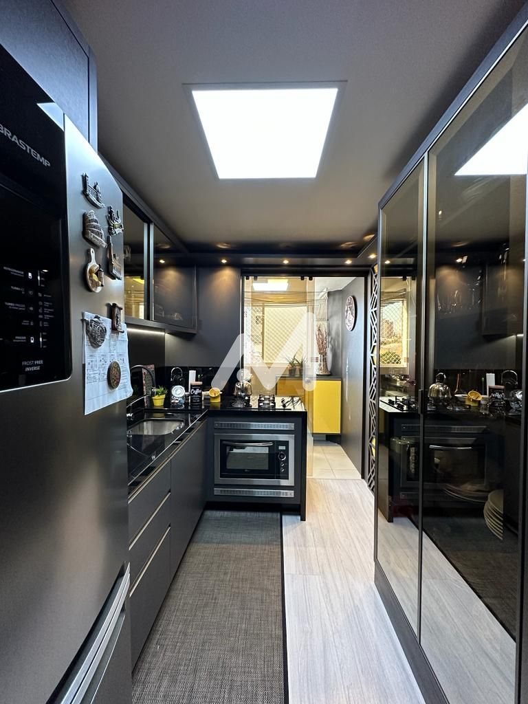 Características do Imóvel: Ar condicionado, Banheiro social, Churrasqueira, Cozinha, Gás individual, Interfone, Móveis planejados, Sacada, Sala de estar, Sala de jantar, Área de serviço