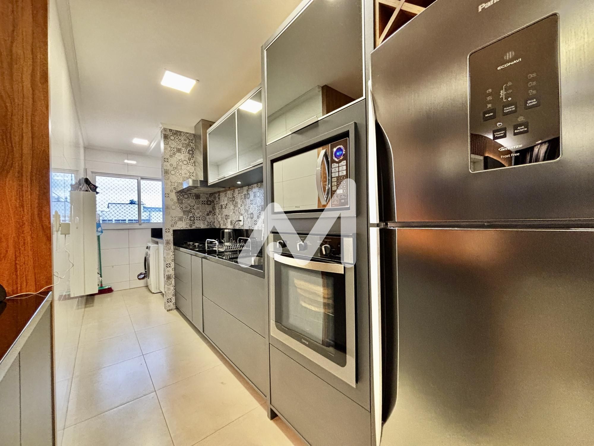 Belíssimo apartamento, semimobiliado com móveis planejados, composto por 02 dormitórios, cozinha, sala de estar/jantar, área de serviço, banheiro social, sacada fechada com vidro e churrasqueira, box para 01 carro.