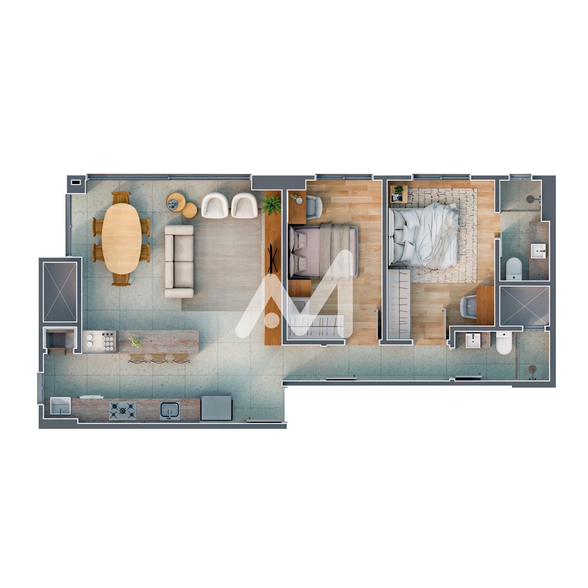 Apartamento em construção de 02 dormitórios com suíte, porcelanato e laminado, janelas amplas, acabamento classe "A" e box de estacionamento.