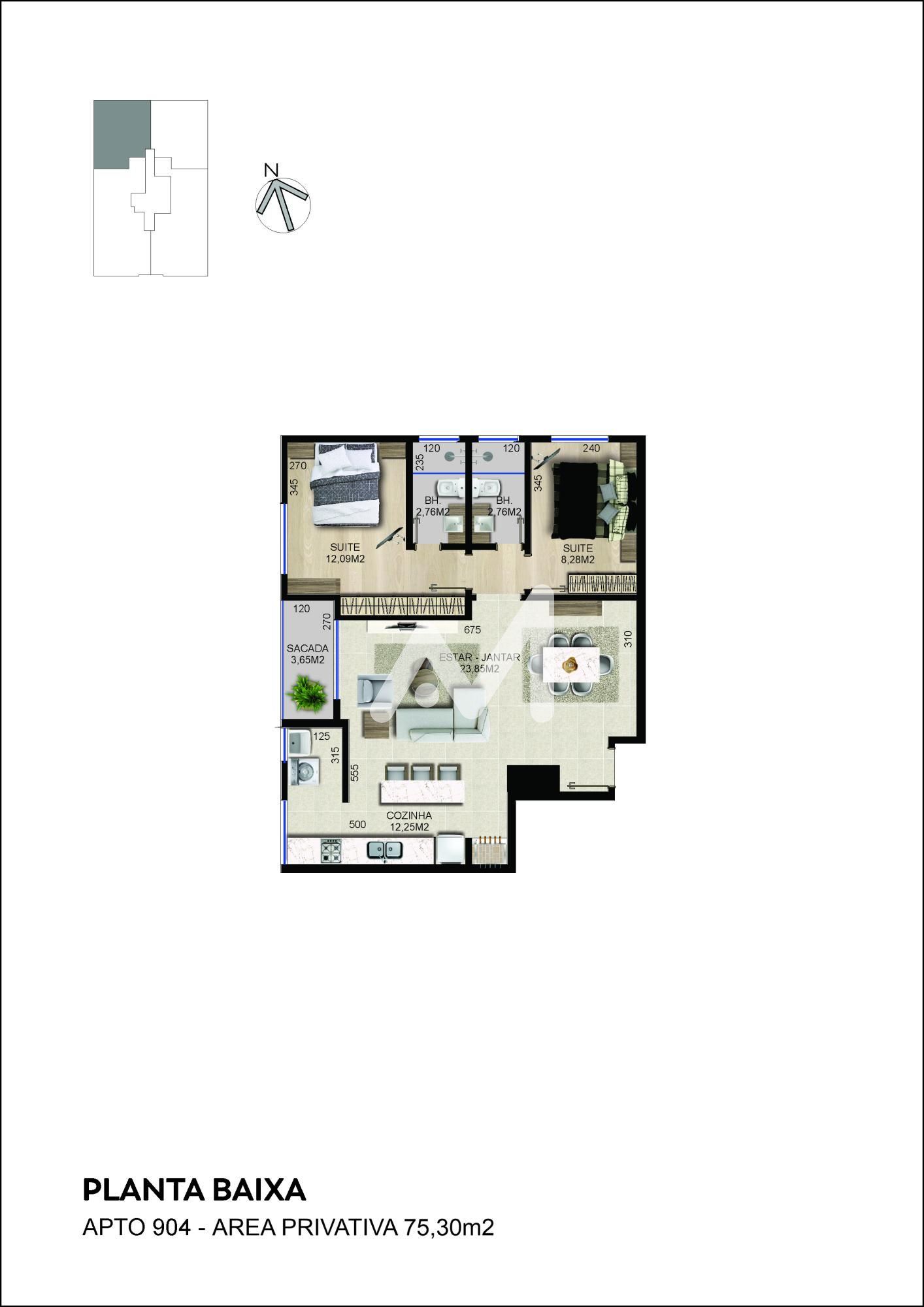 Apartamento de 02 dorm., sendo 01 suíte, sala de estar e jantar, sacada, churrasqueira, box estacionamento, excelente orientação solar.