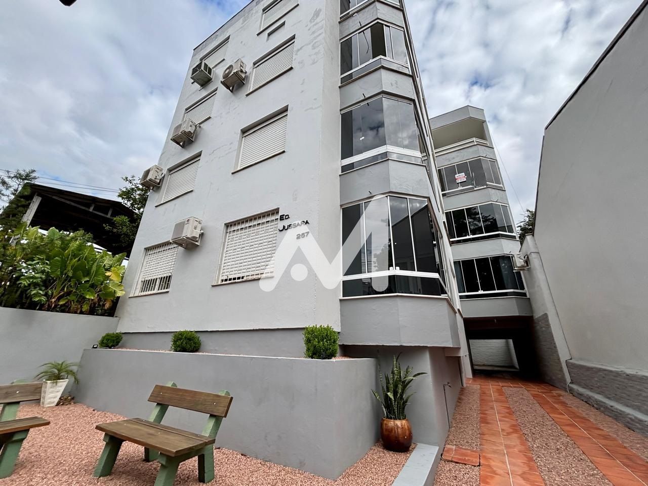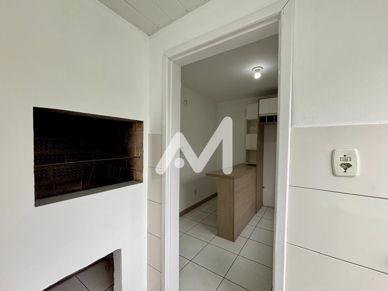 Apartamento 02 dormitórios, sacada de frente, sala, cozinha, banheiro, área de serviço, churrasqueira.