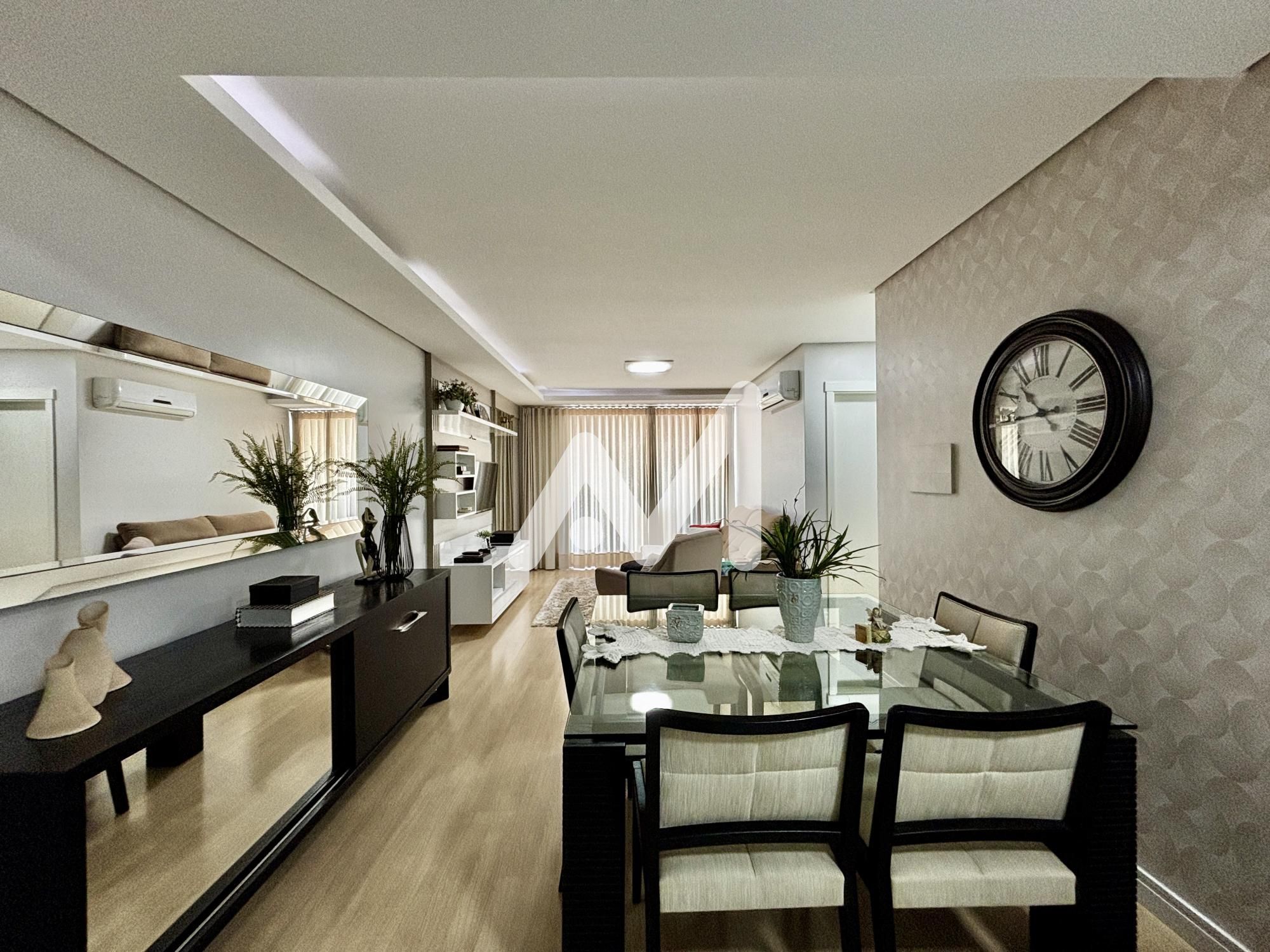 Belíssimo apartamento mobiliado, composto por 02 dormitórios, sendo 01 suíte, cozinha americana, sala de estar/jantar, área de serviço, lavanderia, banheiro social, espaço gourmet, sacada fechada com vidro e churrasqueira, vista panorâmica e box para 01 carro.