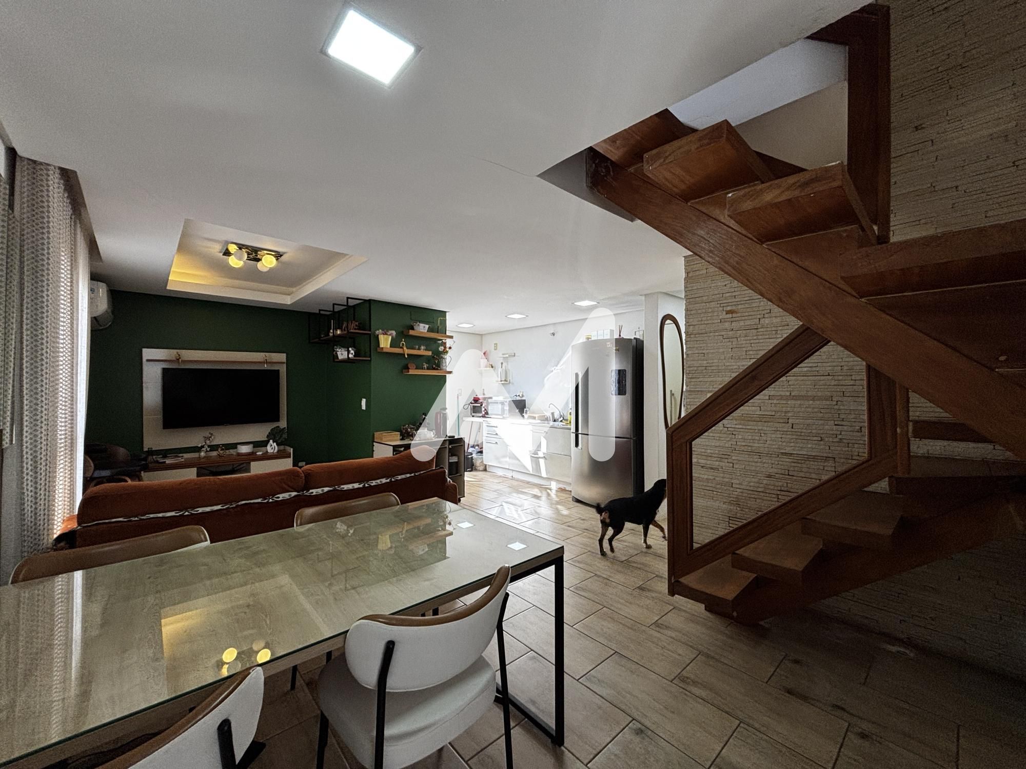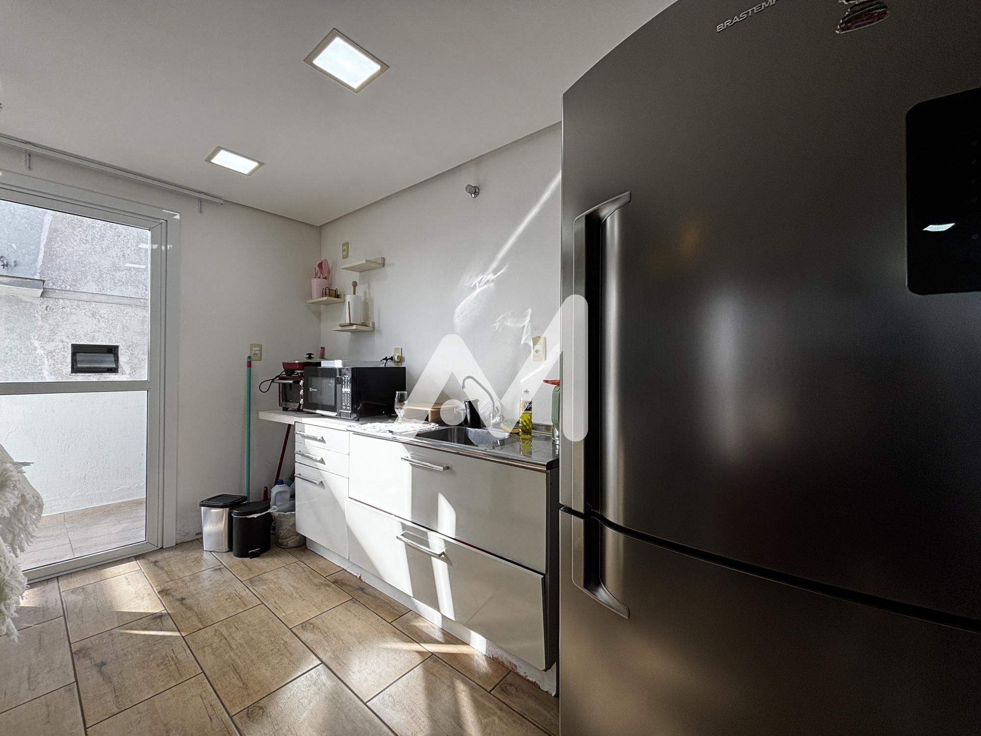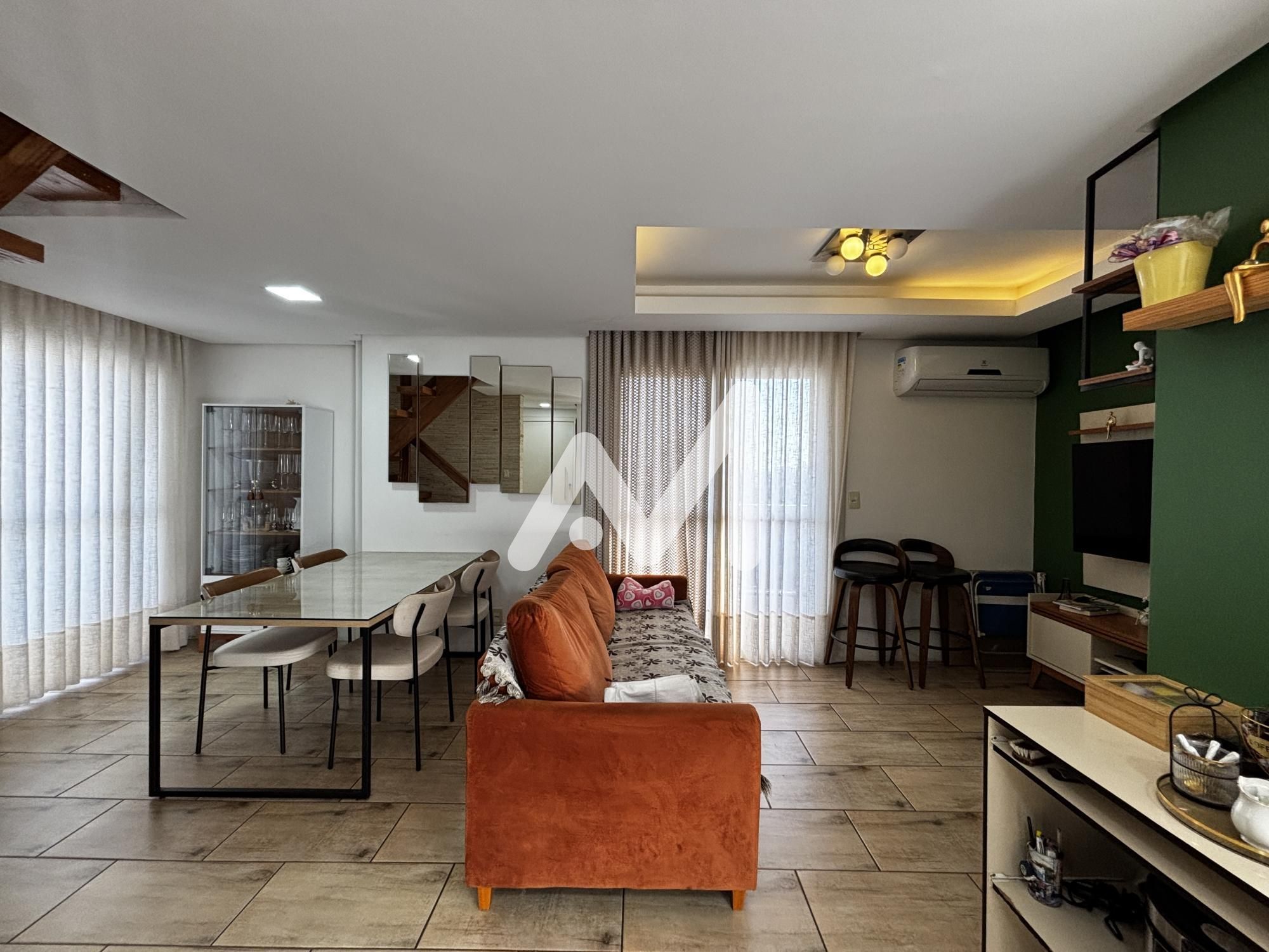 Apartamento Duplex composto por 03 dormitórios, sendo 01 suíte, sala de estar/jantar, cozinha, sacada, terraço, churrasqueira, banheiro social, área de serviço e box de estacionamento. Fica no imóvel box e móveis dos banheiros.