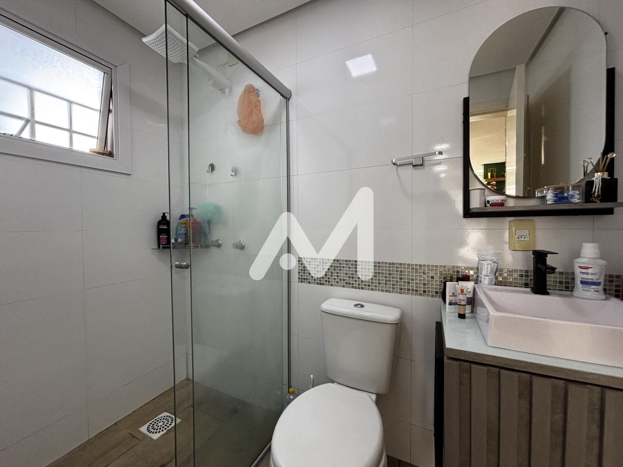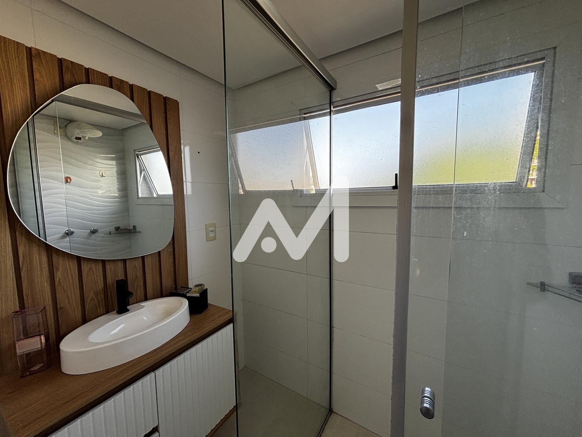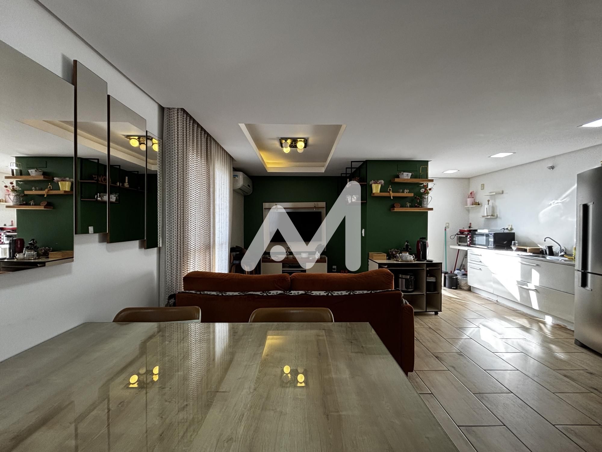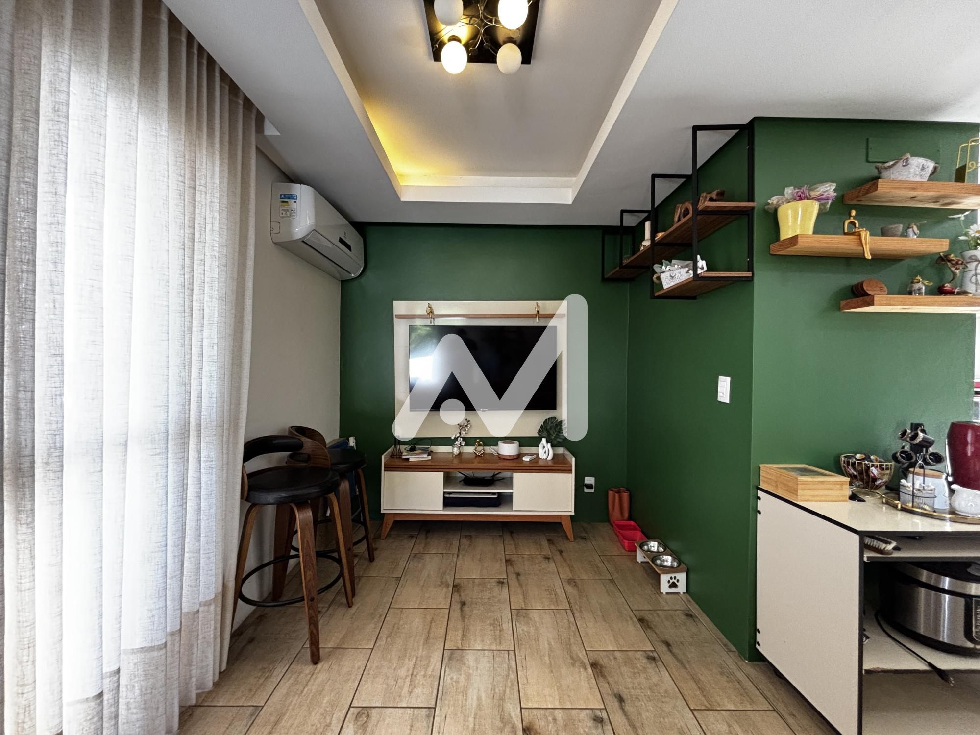 Apartamento Duplex composto por 03 dormitórios, sendo 01 suíte, sala de estar/jantar, cozinha, sacada, terraço, churrasqueira, banheiro social, área de serviço e box de estacionamento. Fica no imóvel box e móveis dos banheiros.