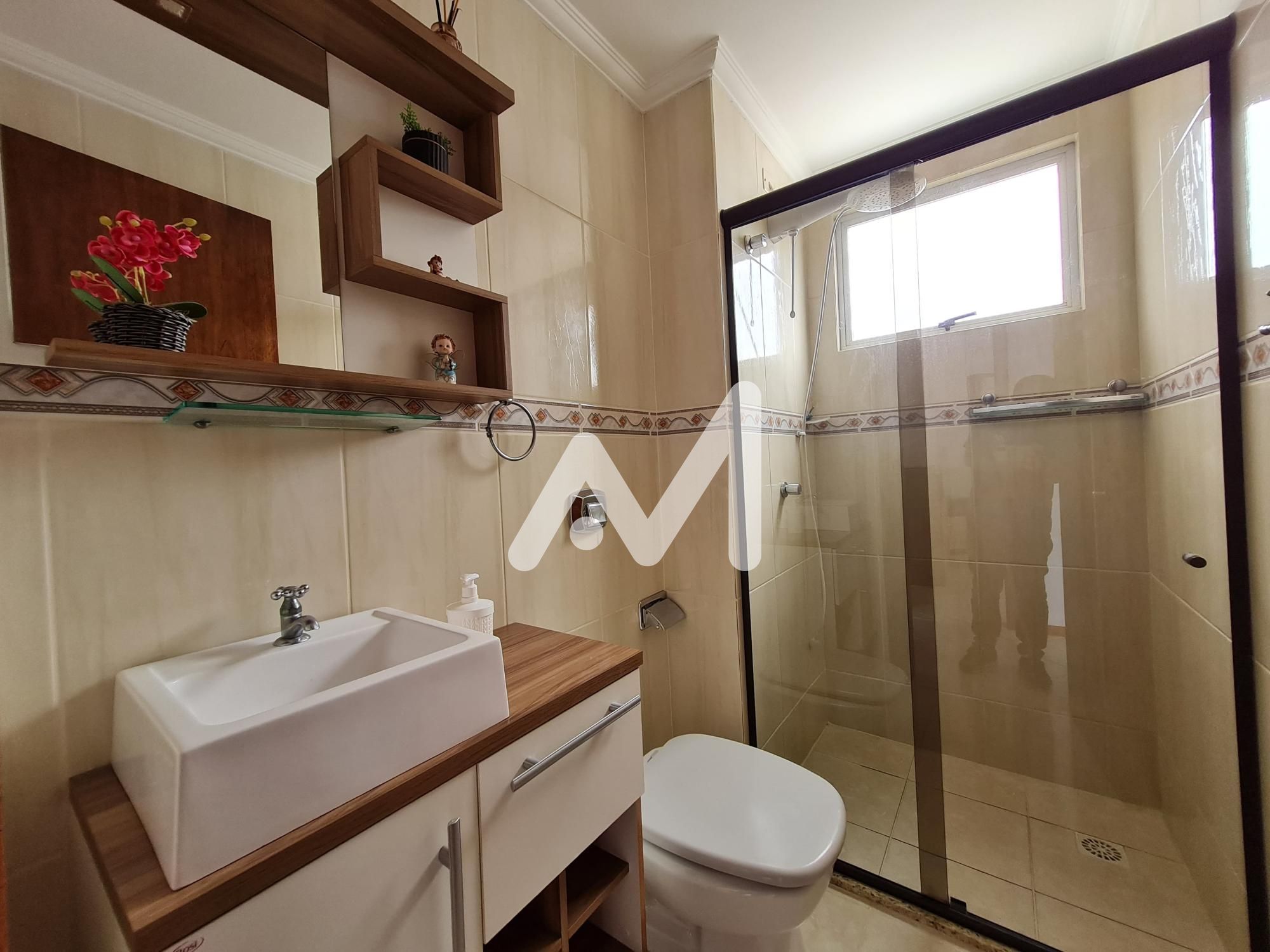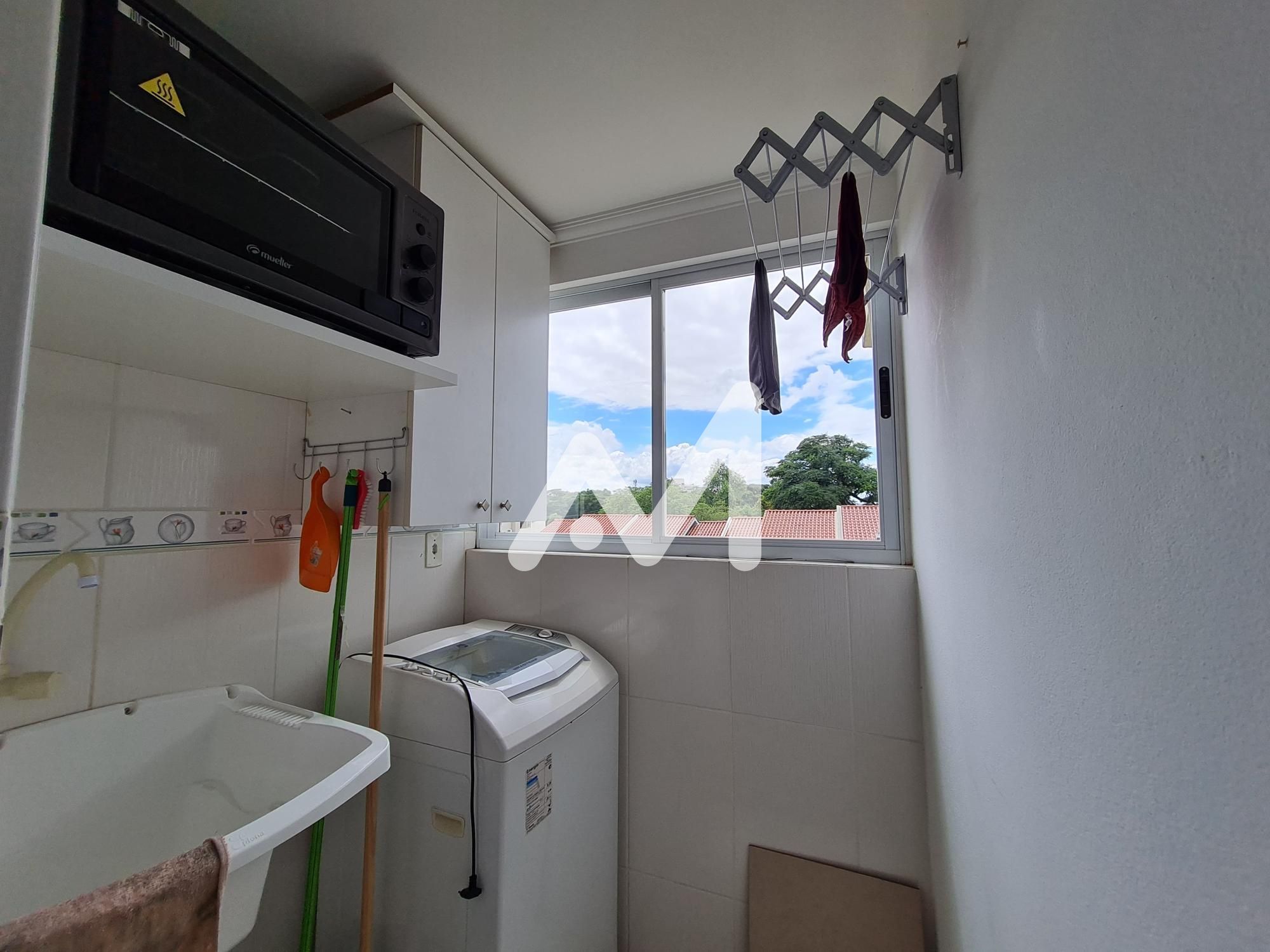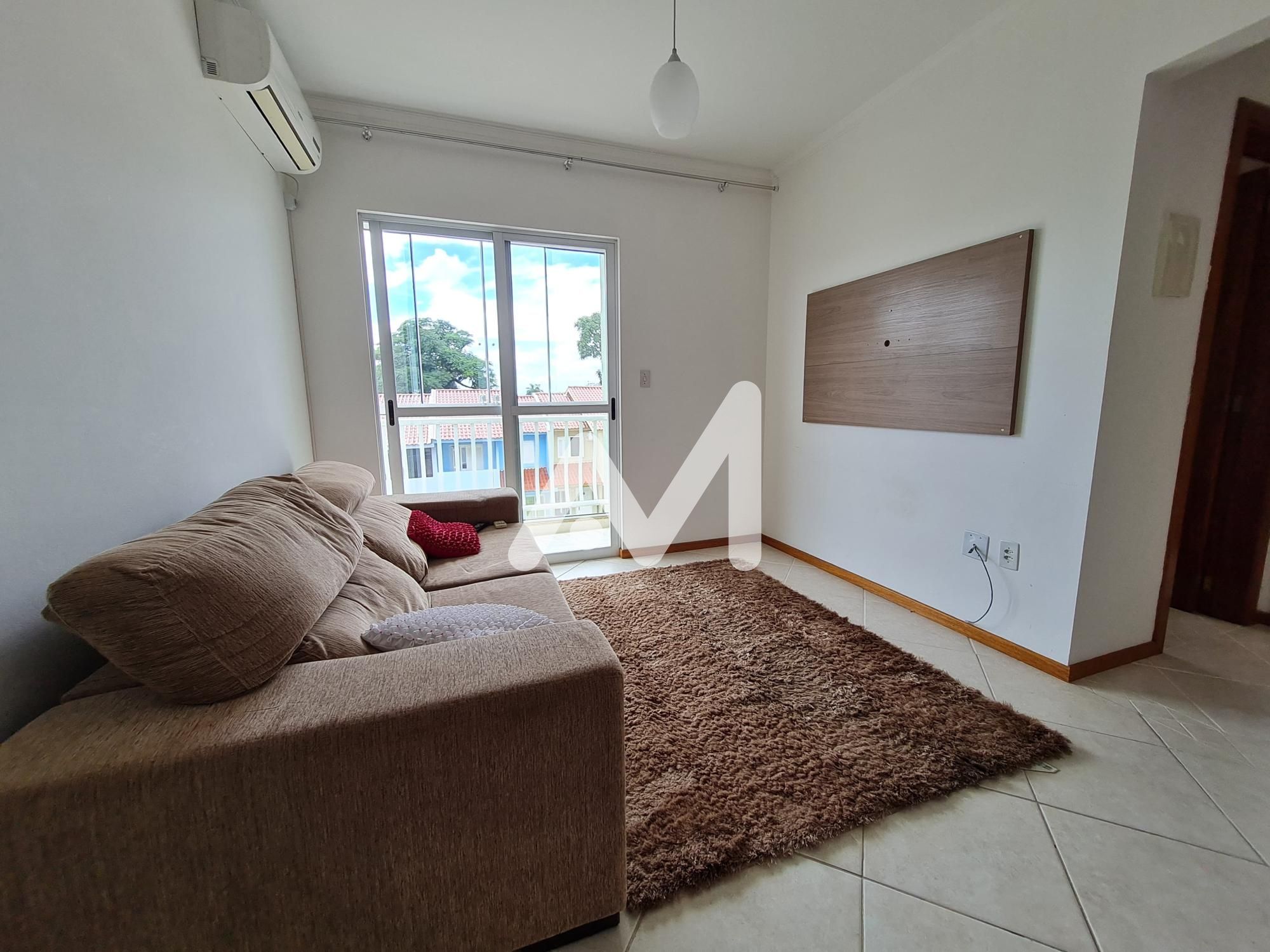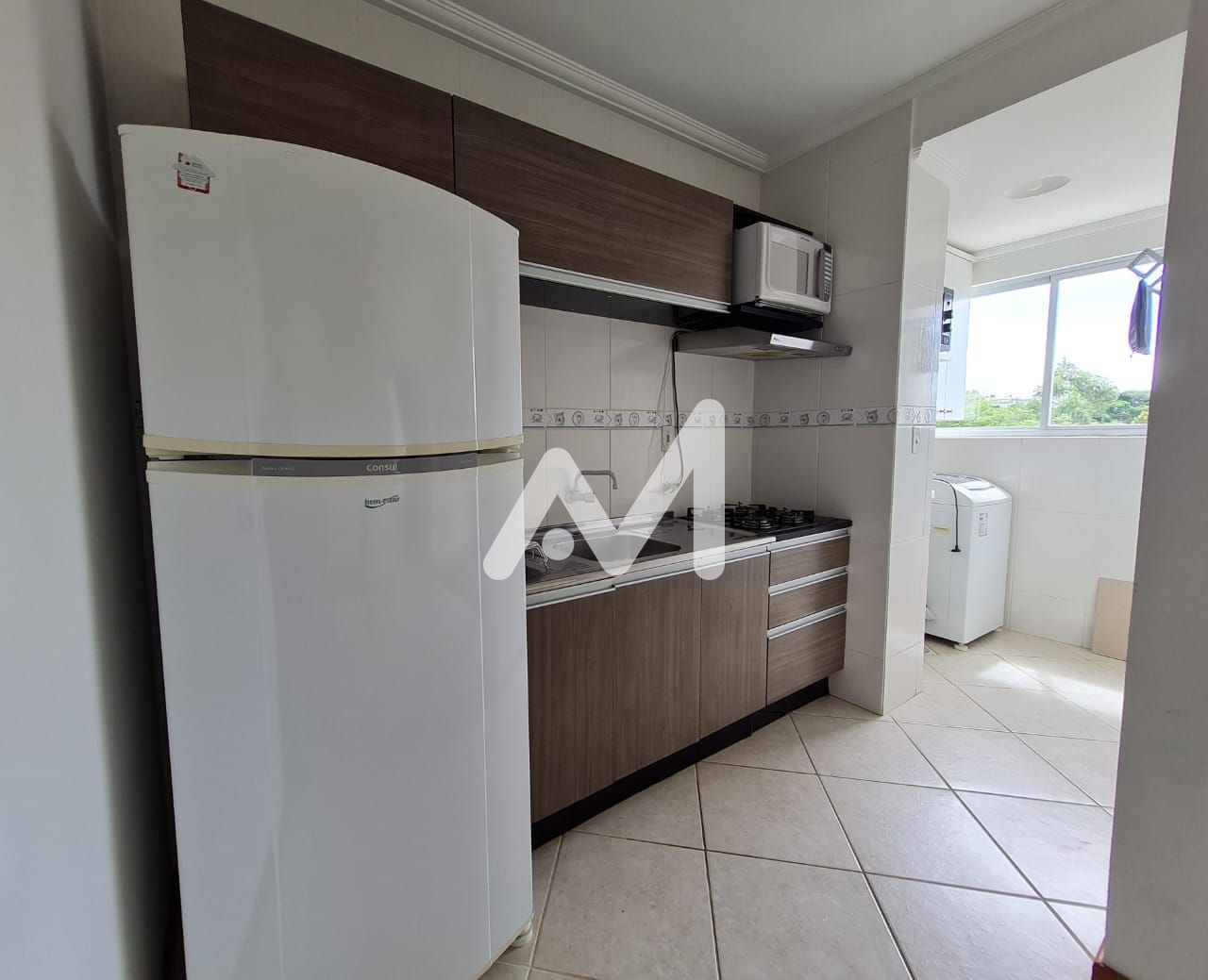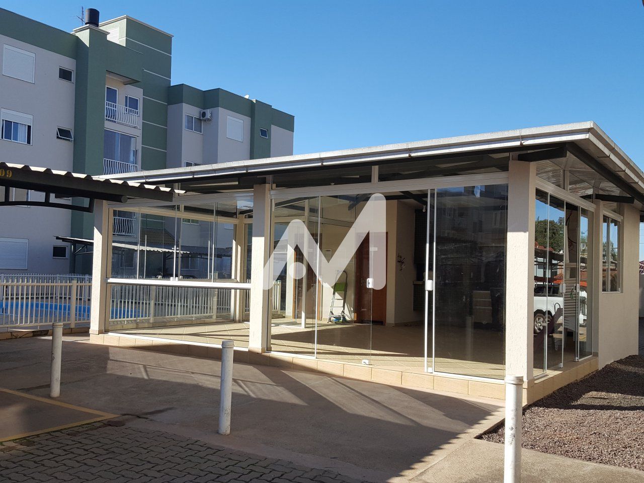 Apartamento semimobiliado em condomínio fechado! 02 dormitórios, sala com split, cozinha sob medida, banheiro social, área de serviço, sacada fechada de frente, churrasqueira e Box de estacionamento.