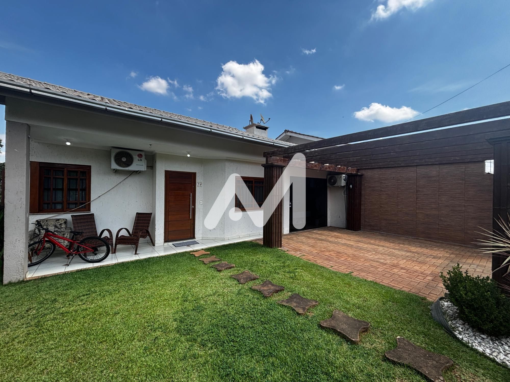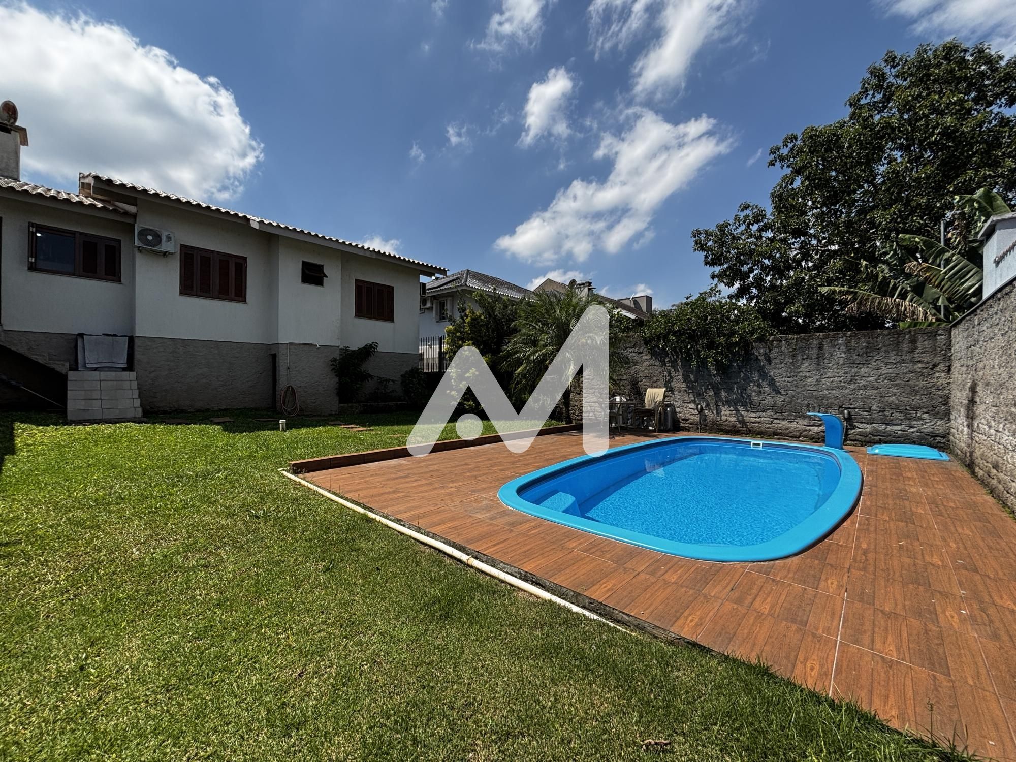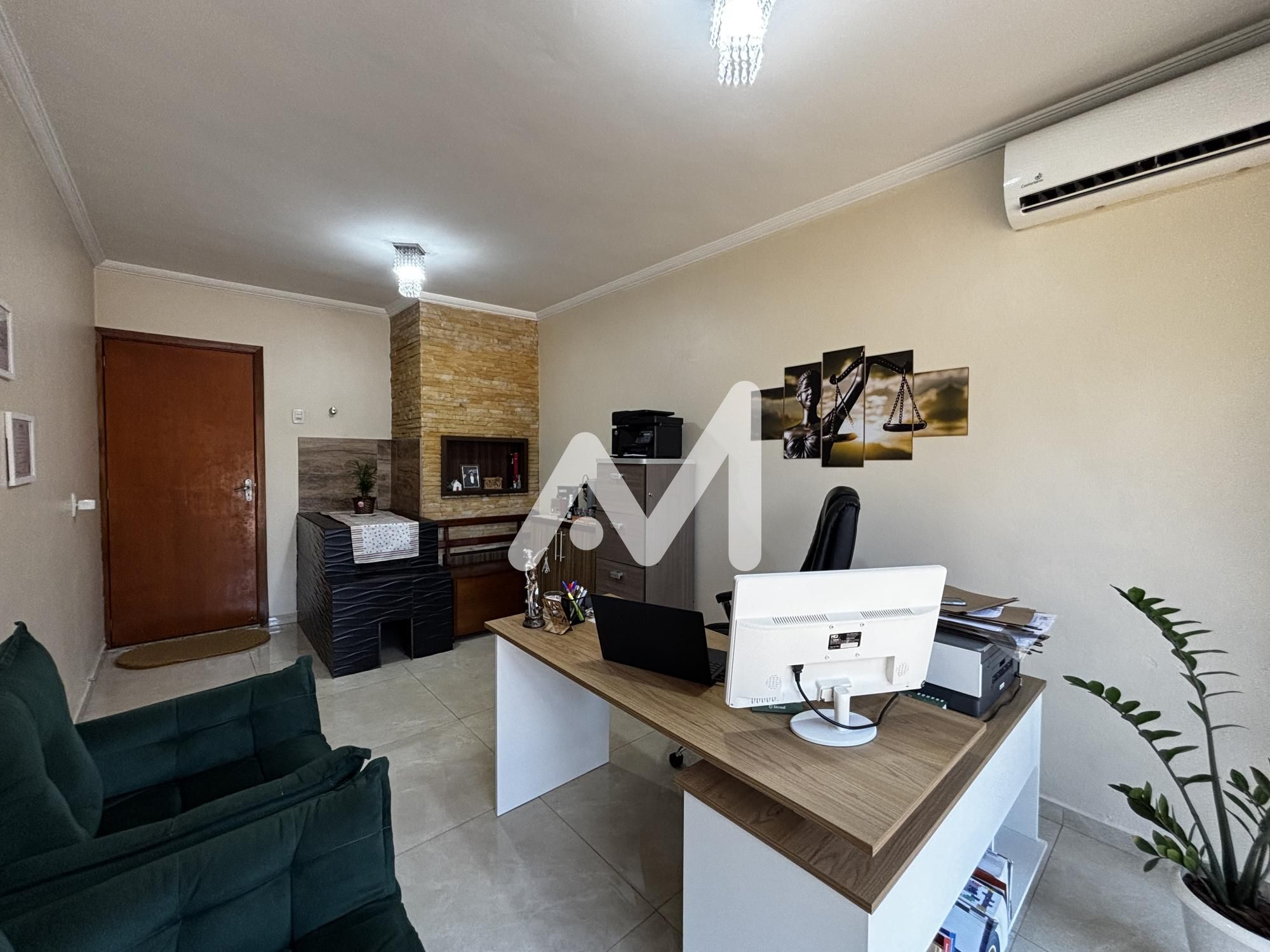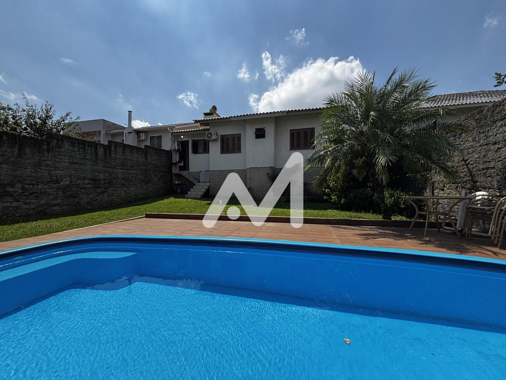 Belíssima casa semimobiliada com móveis planejados, composta por 03 dormitórios, sendo 01 suíte, cozinha, sala de estar/jantar, área de serviço, despensa, escritório, banheiro social, 5 ares-condicionados splits, amplo pátio de fundos com piscina, varanda, garagem para 02 carros, cercado e murado.