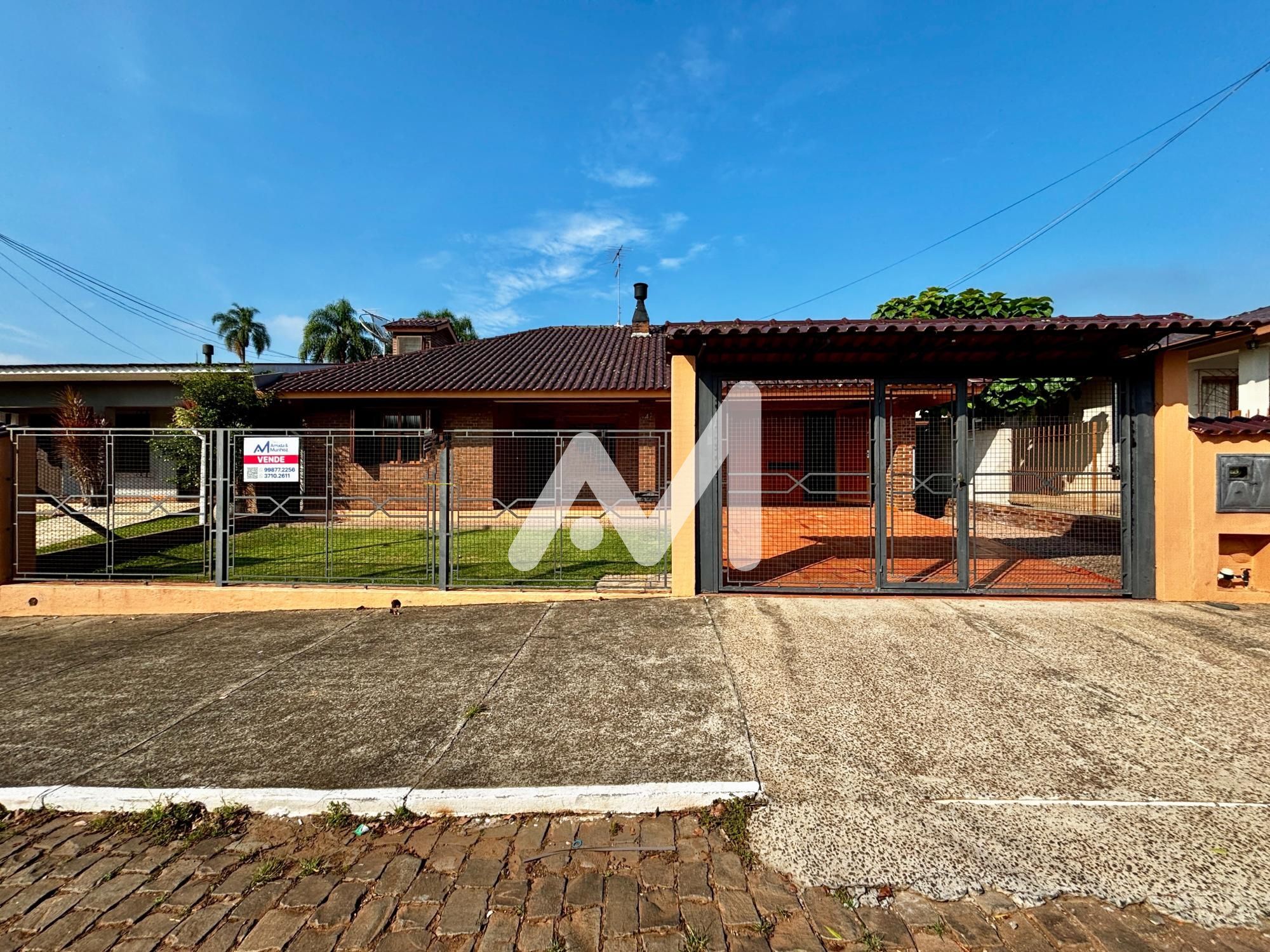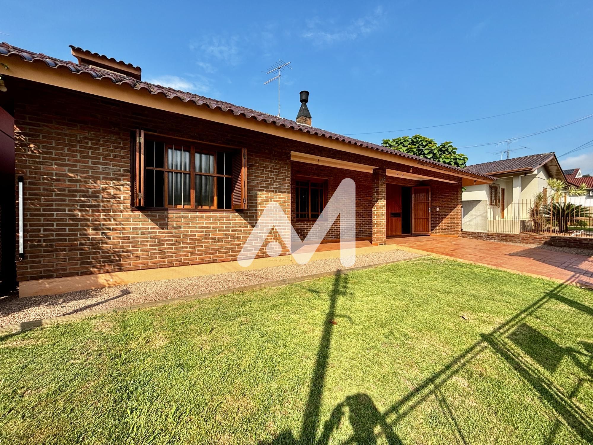 Belíssima casa, composta por 03 dormitórios, cozinha, sala de estar/jantar, área de serviço, despensa, banheiro social, quiosque, espaço gourmet, lareira, amplo pátio frente e fundos, entrada lateral, varanda, garagem para 02 carros, cercado e murado.
