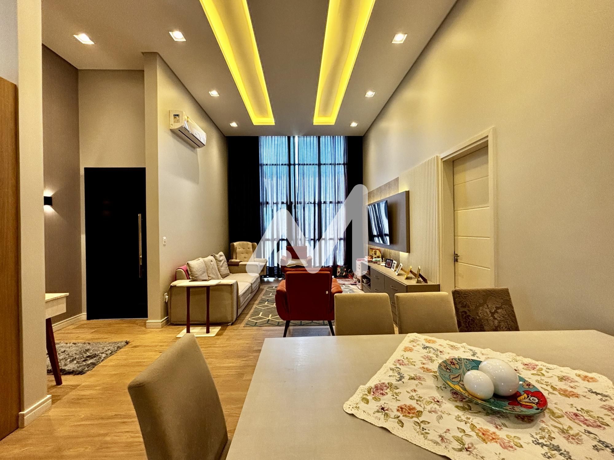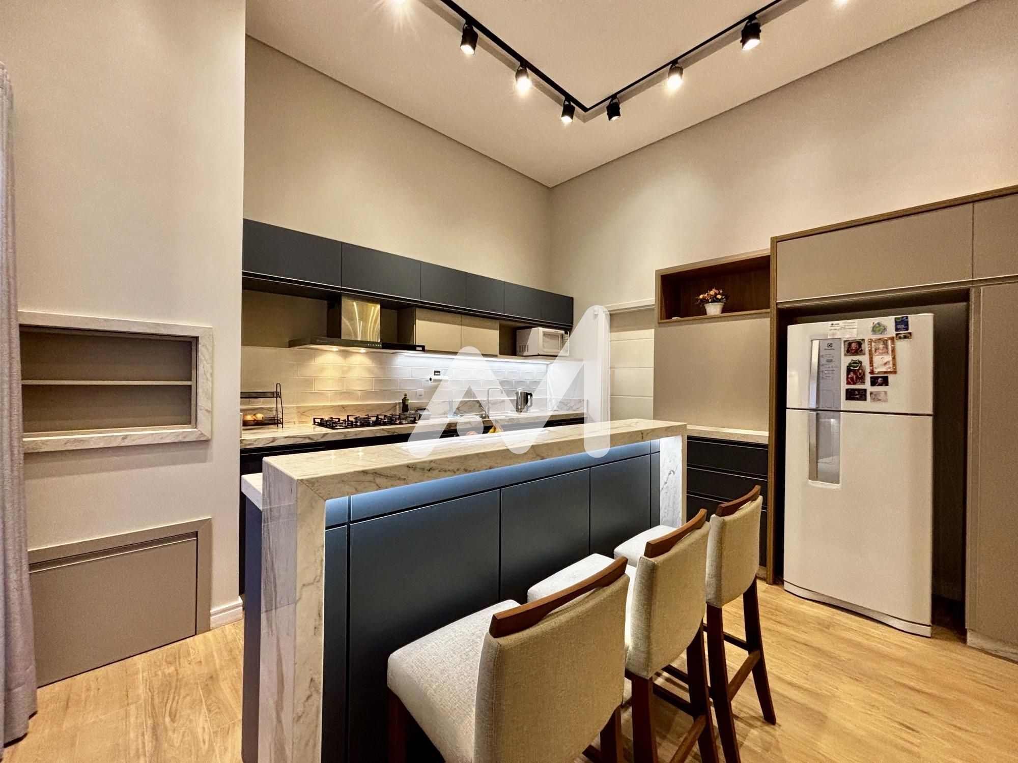 Belíssima casa semimobiliada, com móveis planejados, composta por 03 dormitórios, sendo 01 suíte com closet, cozinha, sala de estar/jantar, escritório, área de serviço, lavanderia, varanda, amplo pátio frente e fundos, acesso lateral, cisterna de 7 mil litros, espera para energia solar, garagem para 02 carros, cercada e murada.