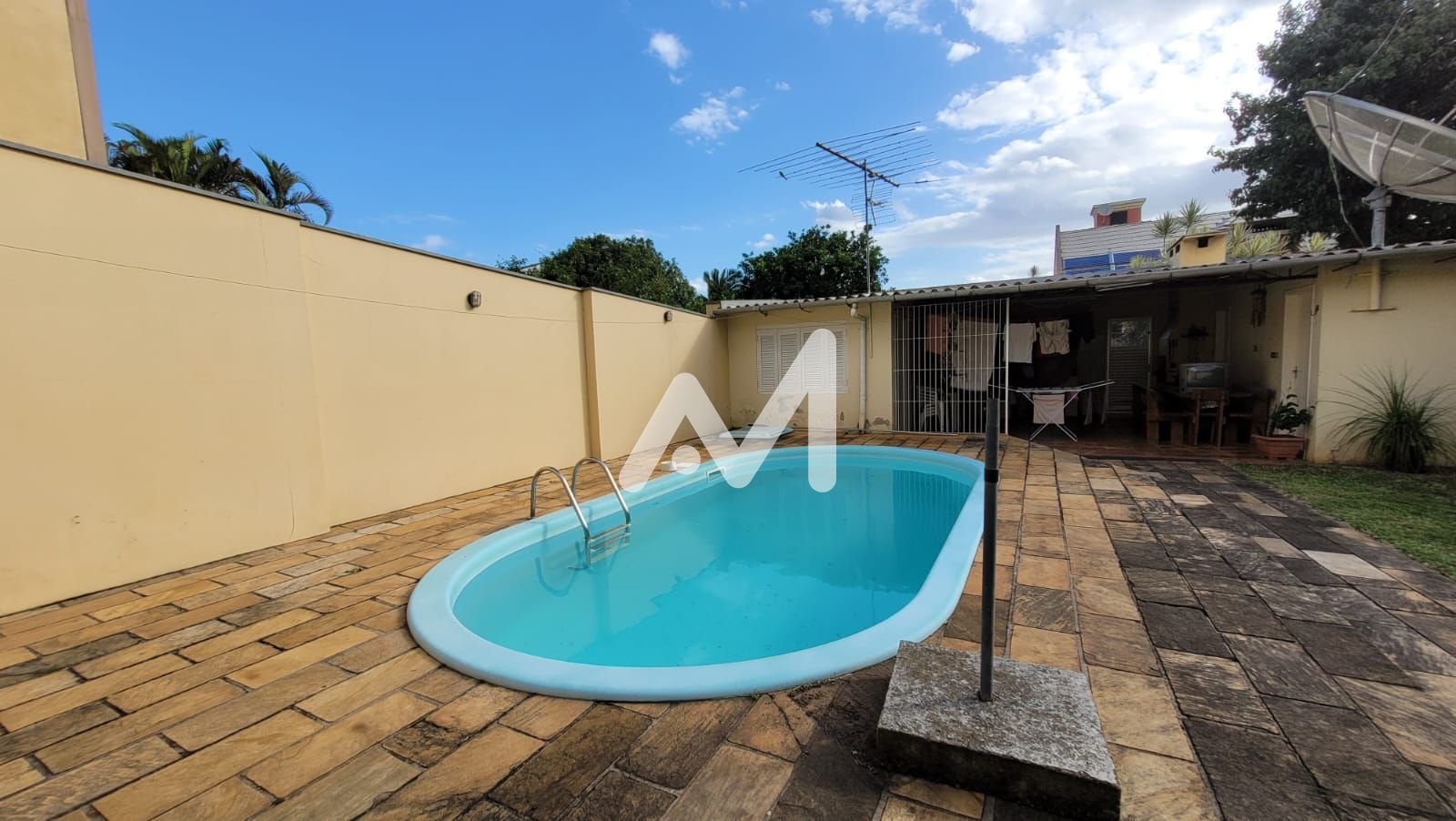 Características do Imóvel: Armário cozinha, Banheiro social, Cozinha, Lareira, Piscina, Pátio, Sala de estar, Área de serviço