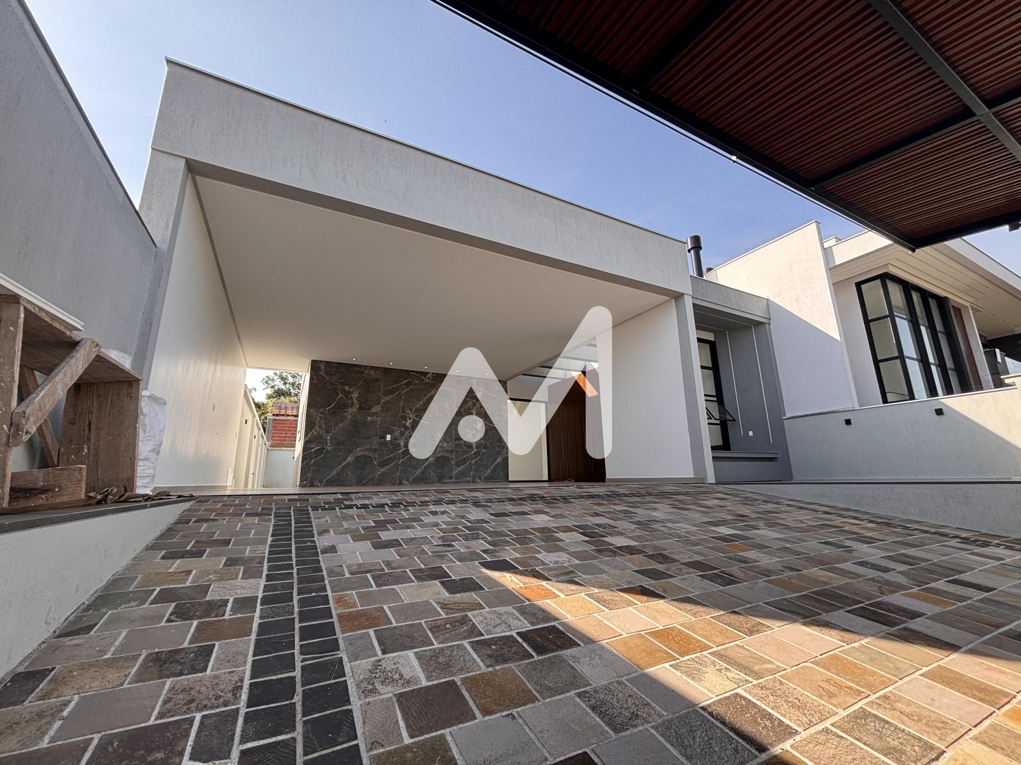 Casa em construção com 01 suíte master e 02 suítes americanas, sala de estar com lareira, cozinha gourmet, banheiro auxiliar, lavanderia separada, garagem para dois carros.