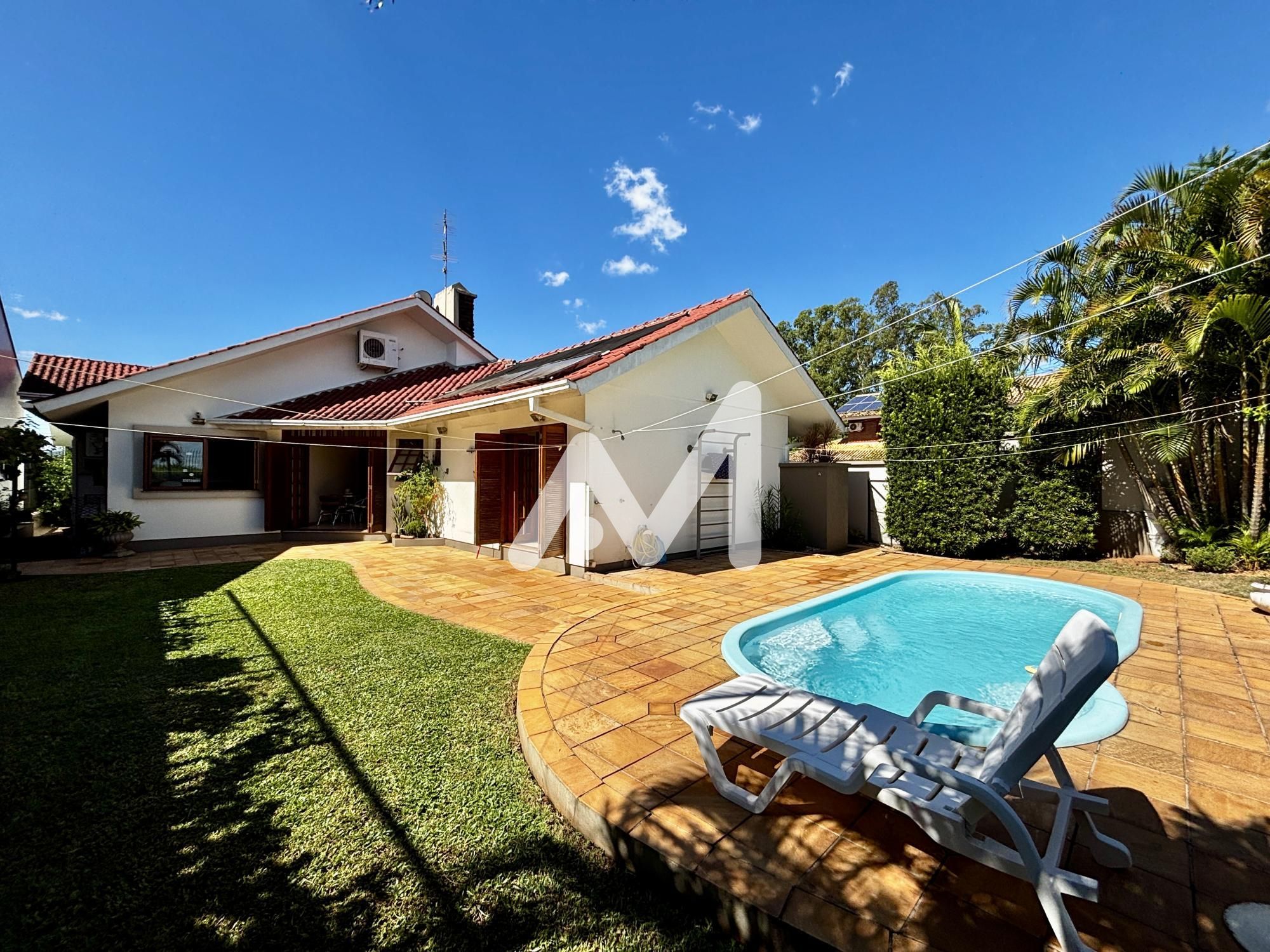 Belíssima casa de esquina semimobiliada, composta por 03 dormitórios, sendo 01 suíte, cozinha, sala de estar/jantar, área de serviço, banheiro social, mezanino, amplo pátio com piscina e jardim, garagem para 02 carros, cercado e murado.