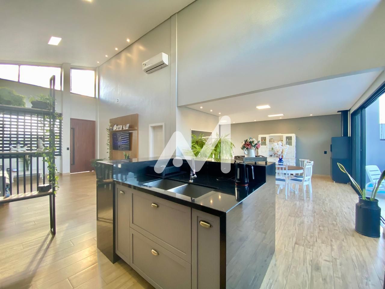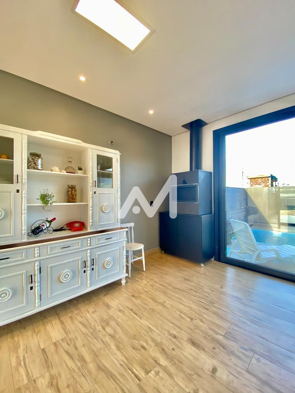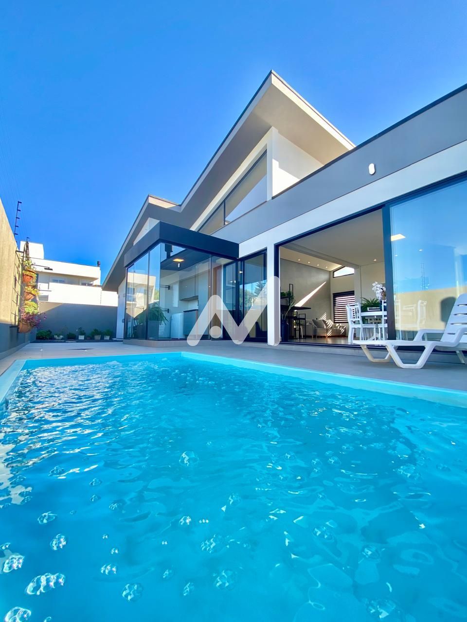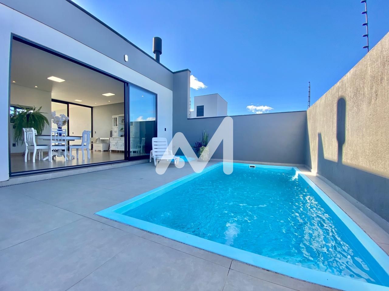 O exterior da propriedade é um verdadeiro paraíso, com uma piscina convidativa, muro e jardim bem cuidados. O pé direito elevado confere uma sensação de amplitude e conforto, enquanto a cozinha grande é um ponto forte para os apaixonados pela arte de cozinhar.