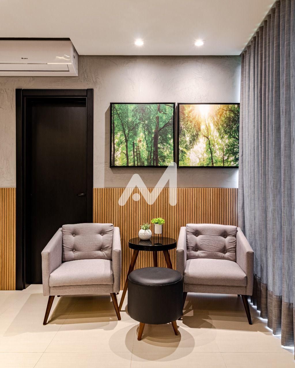 Móveis sob medida,Tv, sofá, paredes com revestimento MDF, ar-condicionado e cortinas.