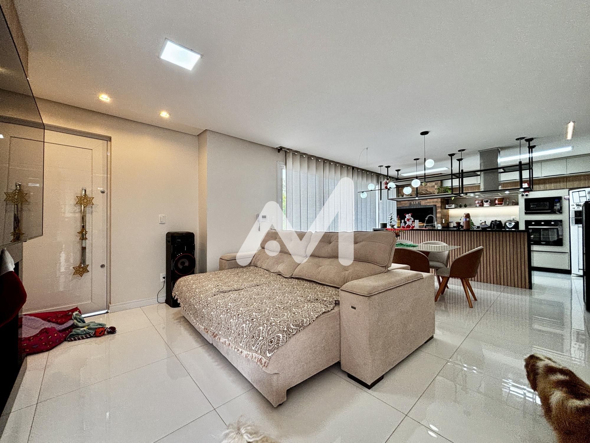 Casa de alto padrão construída no loteamento Monte Olímpo, composta por 03 dormitórios (01suíte), banheiro social no andar inferior e superior, sacada, escritório, churrasqueira, piso porcelanato e vinílico, acabamento em gesso, espera de água quente, piscina, totalmente murada, amplo pátio, massa corrida em toda a casa, espera de água quente, garagem coberta para 02 carros com possibilidade de mais 04 veículos no pátio aberto.