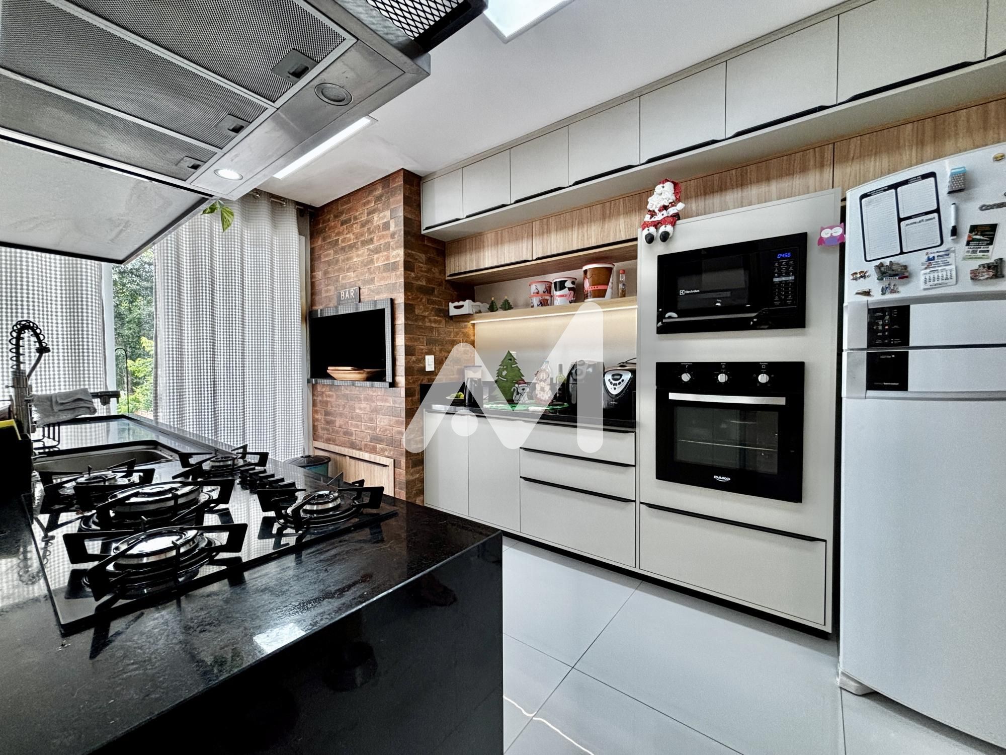 Características do Imóvel: Ar condicionado, Armário cozinha, Armário embutido, Banheiro social, Churrasqueira, Cozinha, Cozinha americana, Despensa, Escritório, Espera para split, Interfone, Jardim, Lareira, Lavabo, Lavanderia, Luminárias, Muro, Móveis planejados, Piscina, Pátio, Sacada, Sala de estar, Sala de jantar, Varanda, Área de serviço