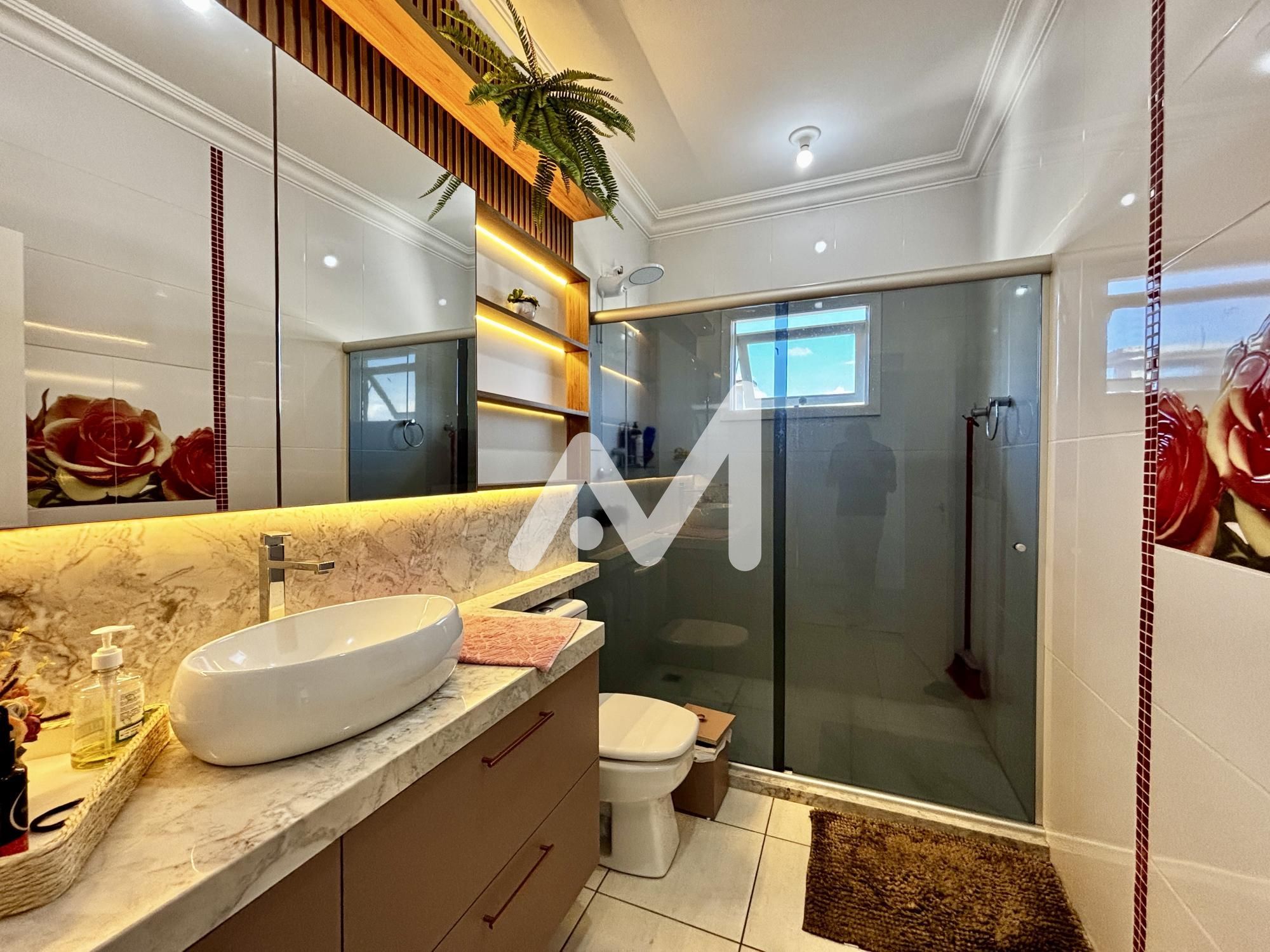 Belíssima casa semimobiliada com móveis planejados, composta por 03 dormitórios, cozinha, sala de estar/jantar, lavanderia, banheiro social, lavabo, área de serviço, varanda, espaço gourmet, varanda, amplo pátio com jardim, sacada, garagem para 01 carro, cercado e murado.