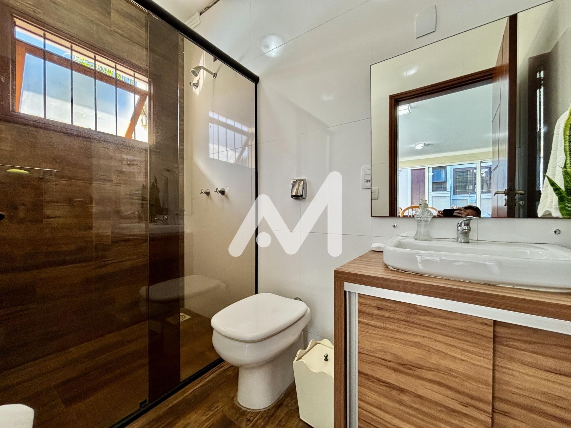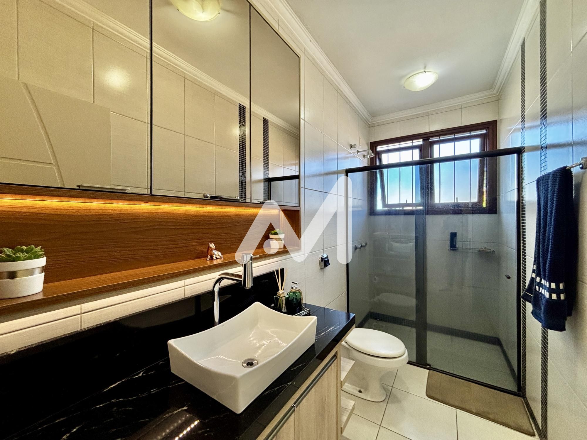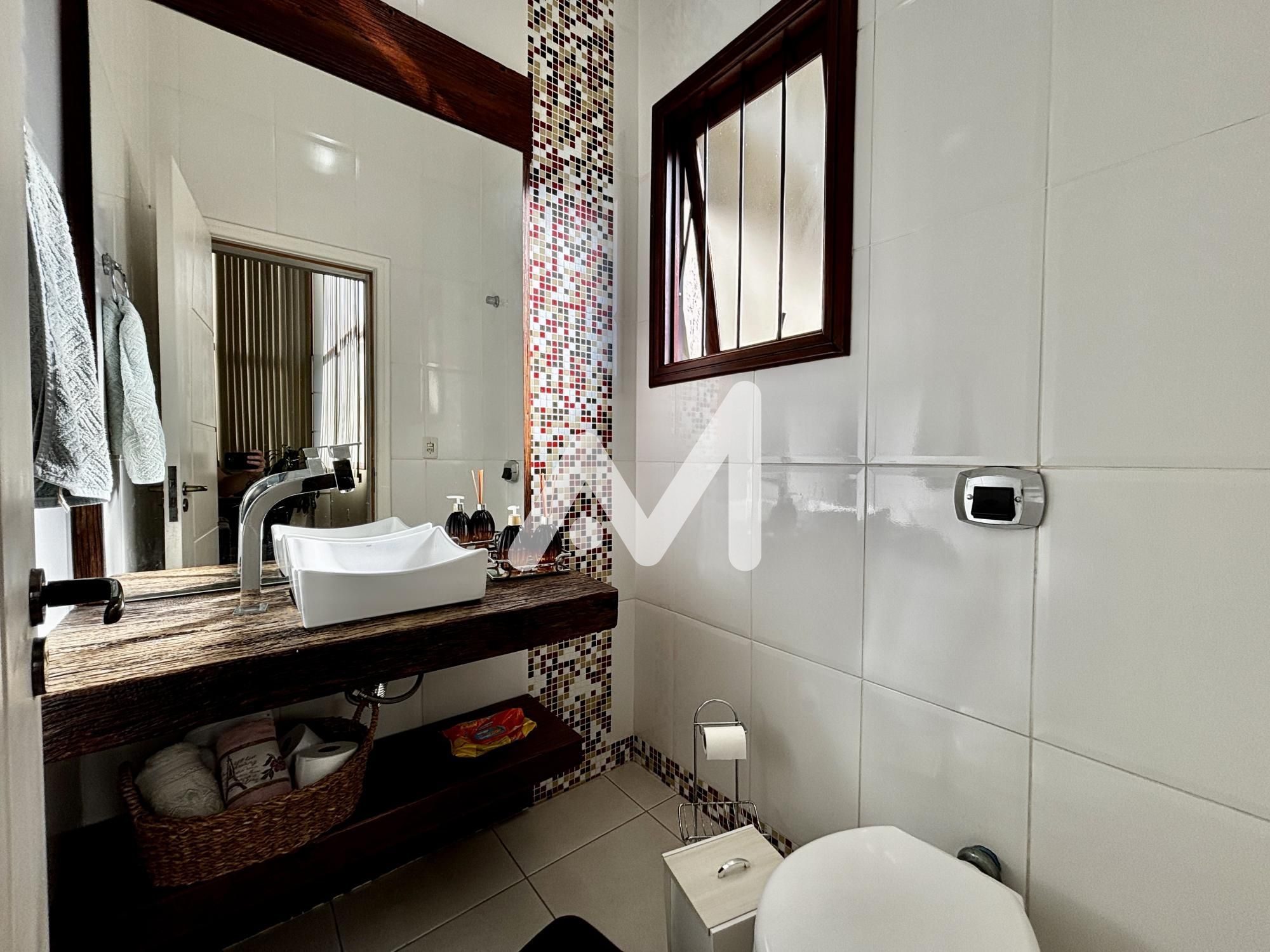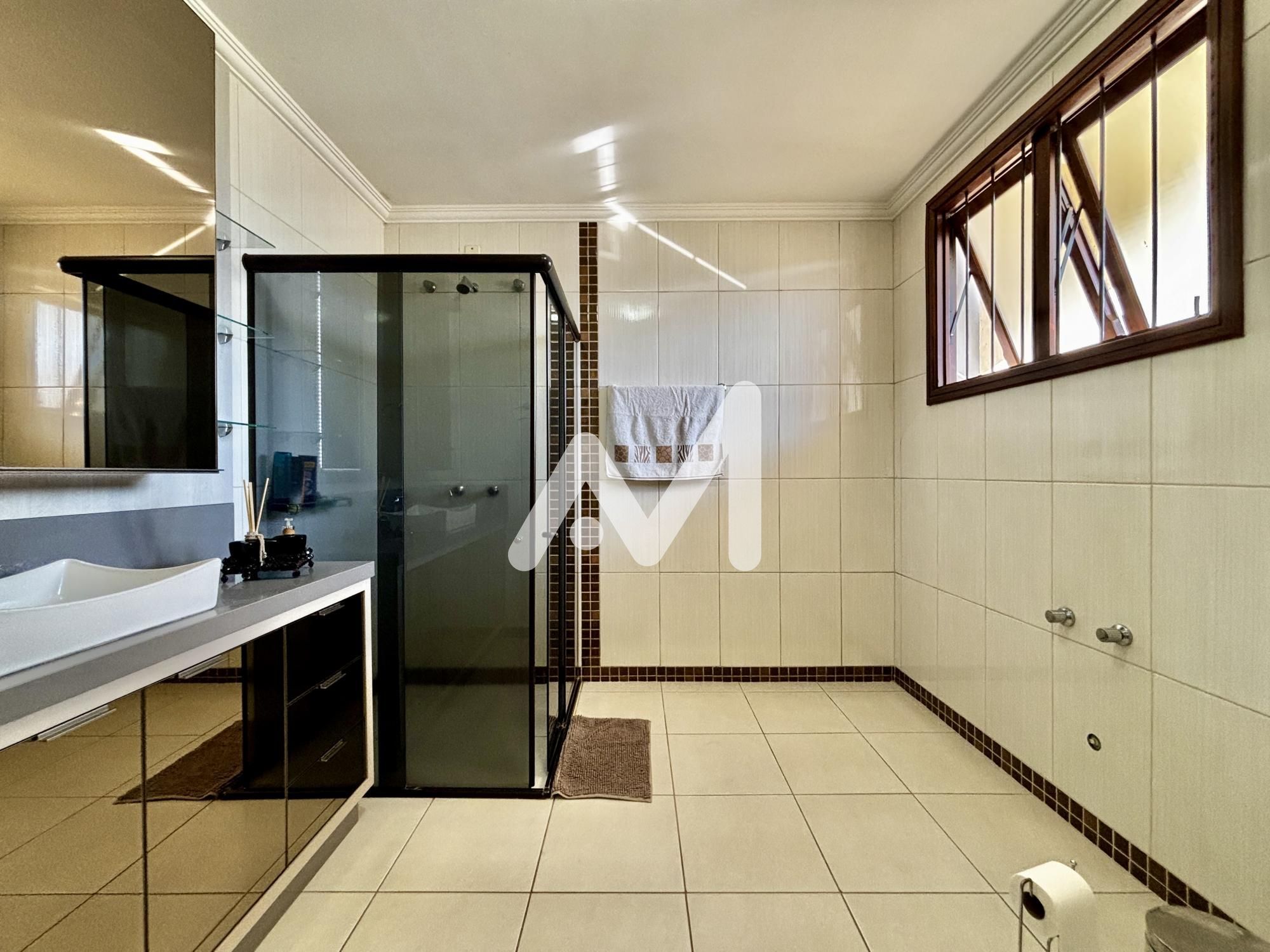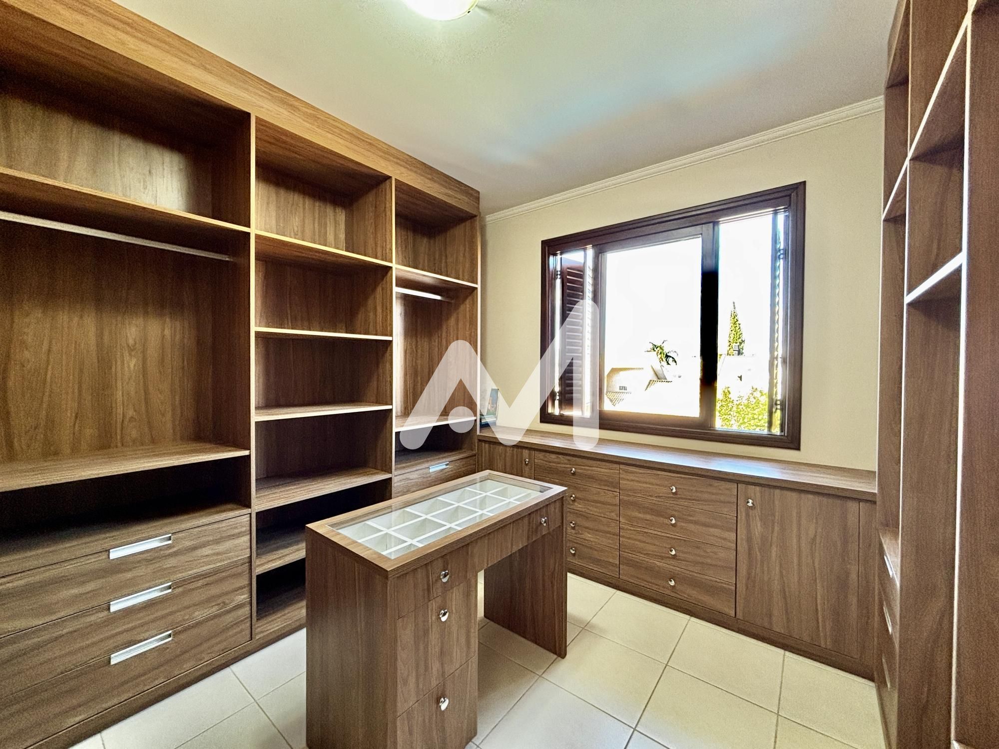 Casa 4 dormitórios, peças amplas e bem arejadas, parte superior com 86,65m², piso cerâmico, suite com closet e sacada, banheiro da suite com espera para banheira, banheiro social e mais 3 dormitórios. Parte inferior com 125,92m², sala de estar com pé direito duplo, lareira, lavabo, rebaixamento em gesso, cozinha americana, sala de jantar, área de serviço separada, escritório, garagem para dois carros, churrasqueira, piso cerâmico. Quiosque com 36m², churrasqueira rotativa, fogão a lenha, dispensa e banheiro, piscina, casa murada, portão eletrônico, cerca elétrica, alarme e placa solares. Excelente localização.