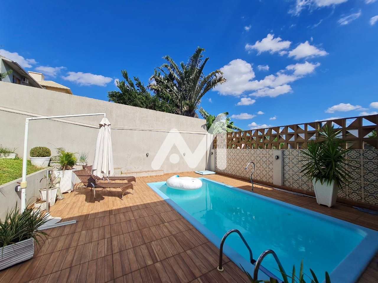 Linda casa semimobiliada, com 03 dormitórios, 02 suítes, sendo 01 suíte com Hidromassagem, 04 banheiros, ampla sala de estar, jantar, estar social com lareira, cozinha, área de serviço, garagem para 02 carros, pátio com quiosque e piscina. Permanecem todos móveis sob medida.